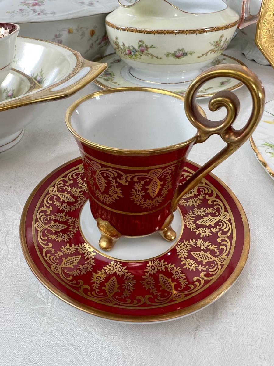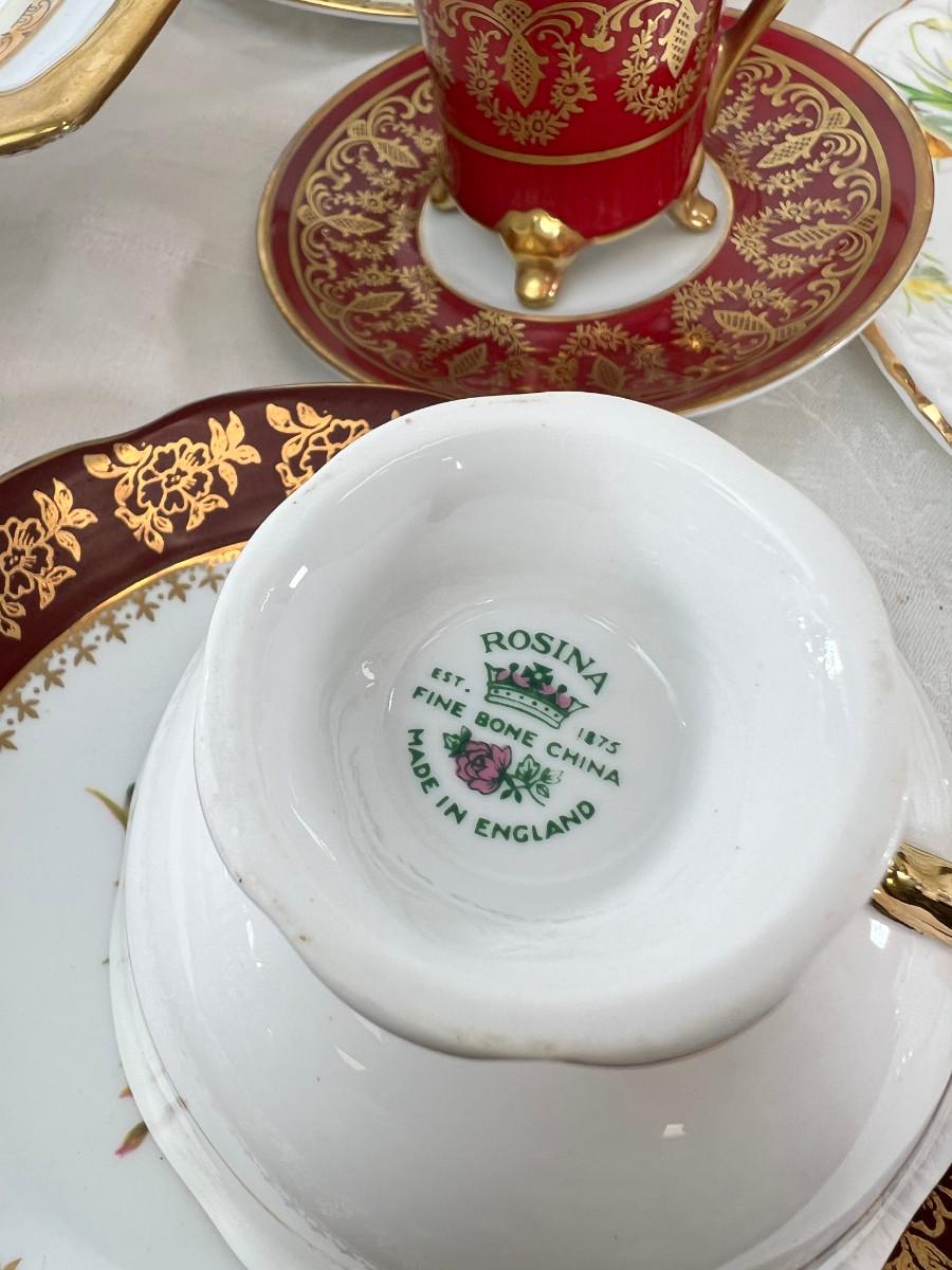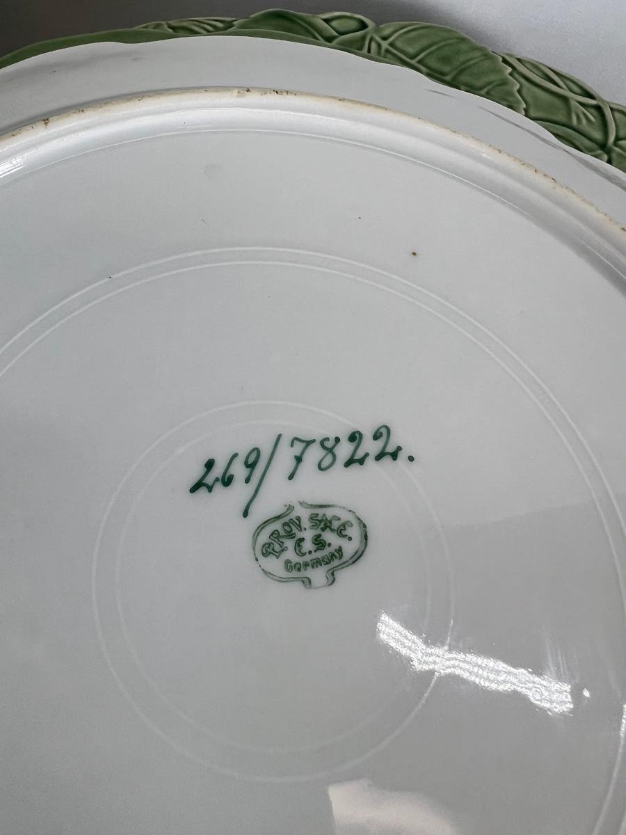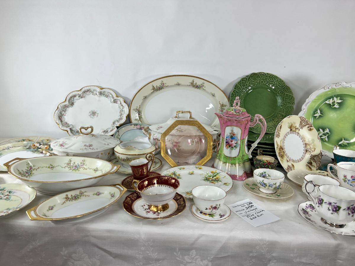 Tea Cups, Chocolate pitcher, Set of Green plates, casserole bowl, gravy boat.