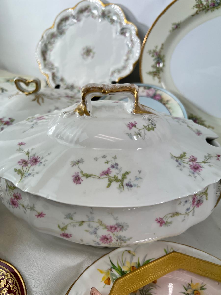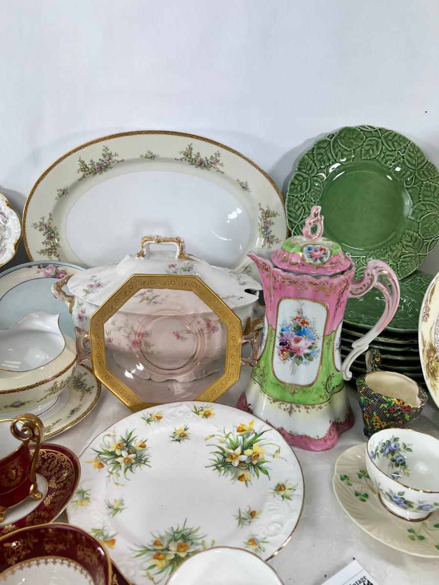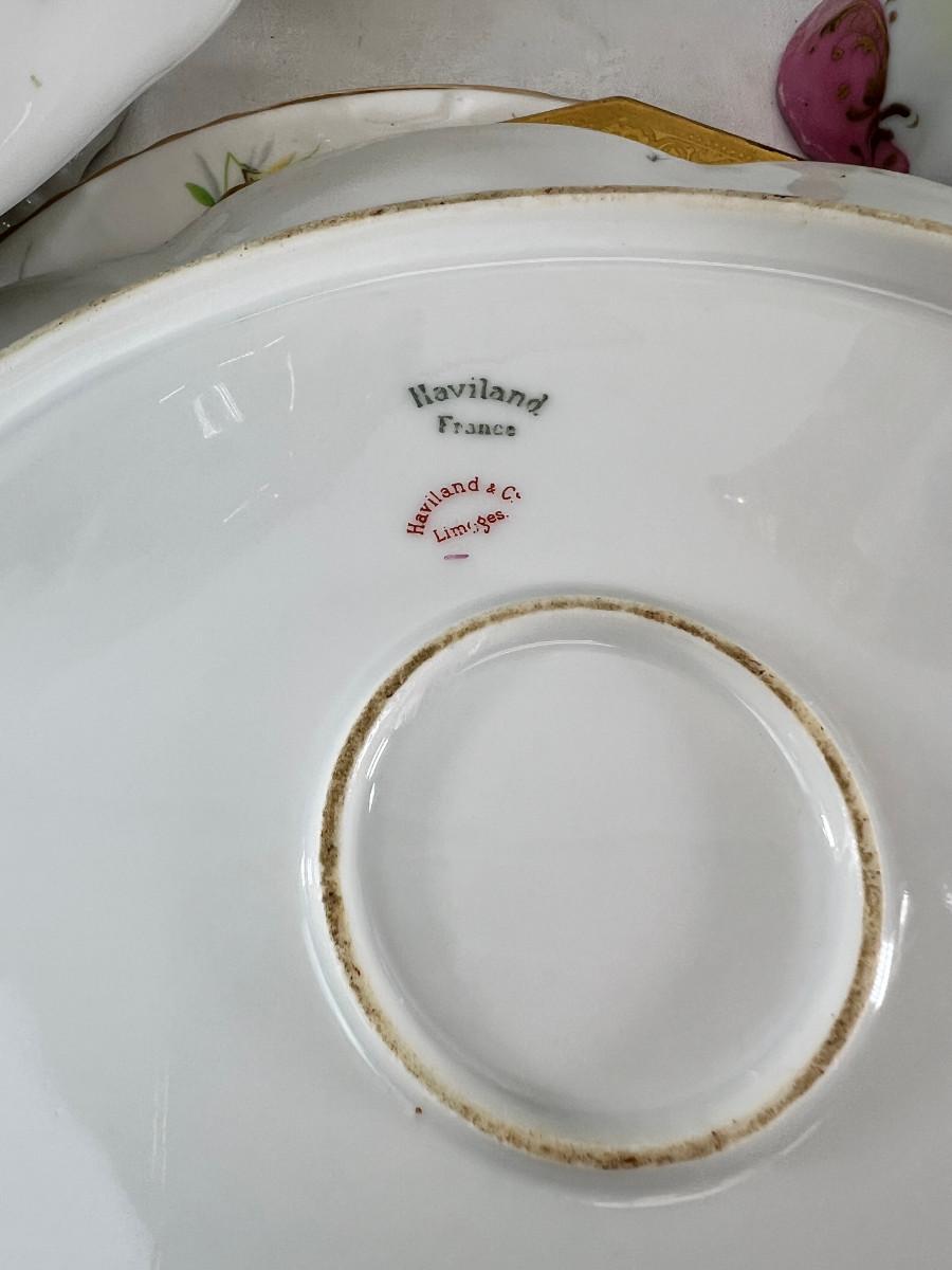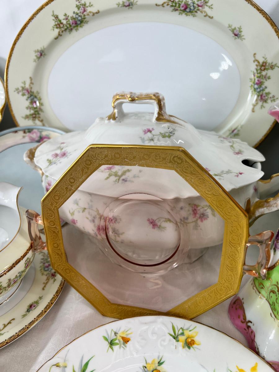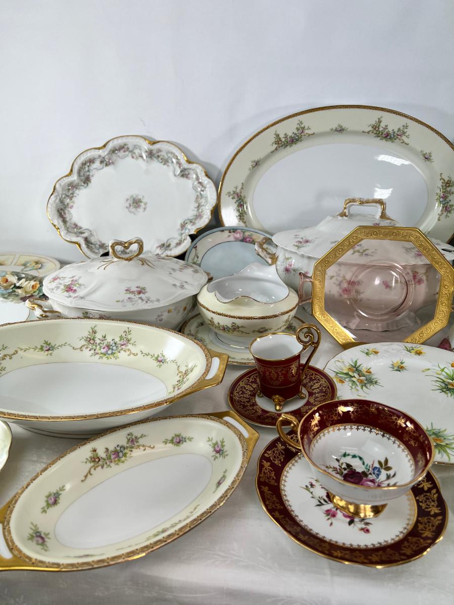 Tea Cups, Chocolate pitcher, Set of Green plates, casserole bowl, gravy boat.