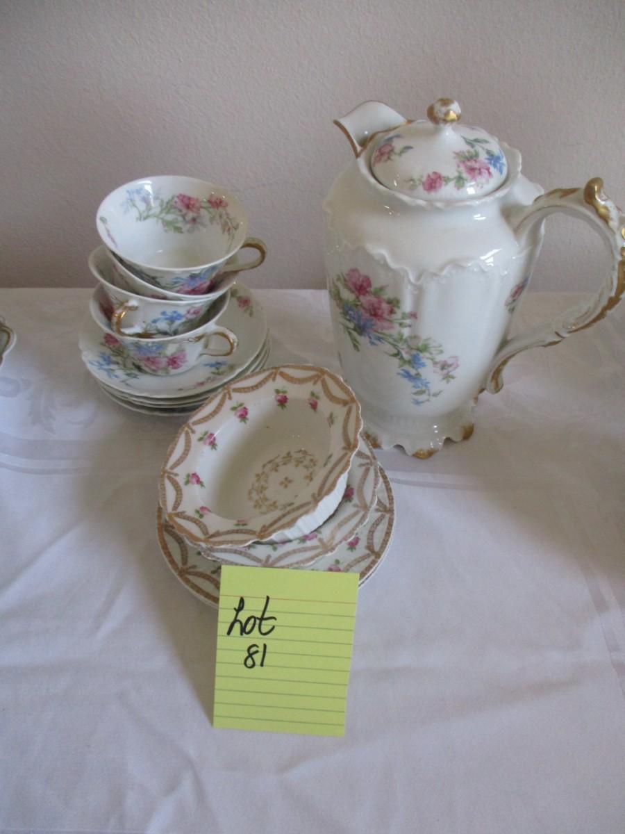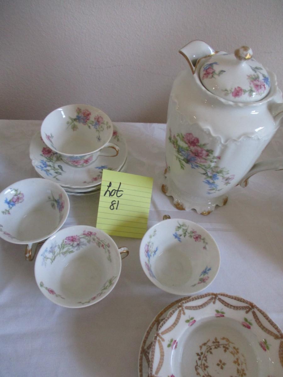 Coffee pot, bowls, cups/saucers