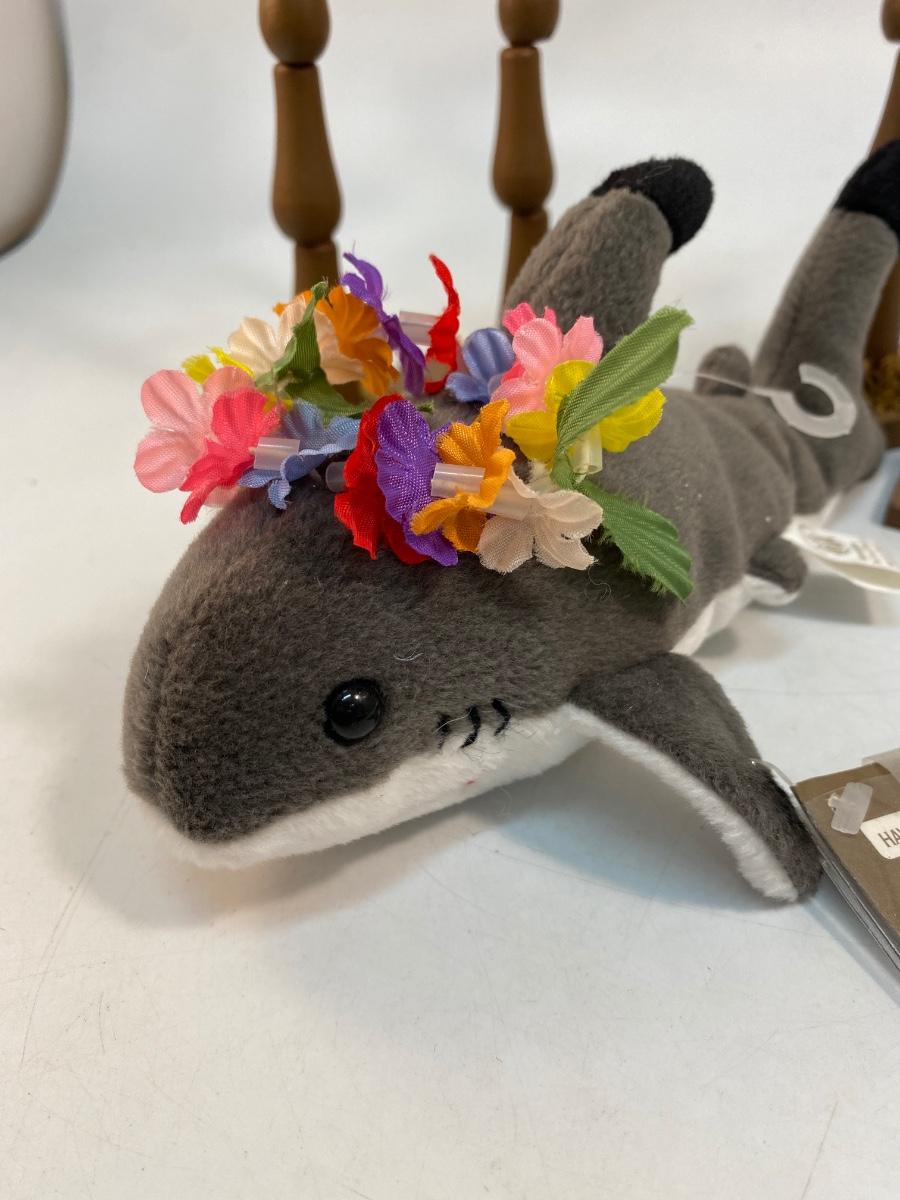 Hawaiian Collectibles Beanie Shark Nemonemo Plush Stuffed Animal and Faux Palm Trees