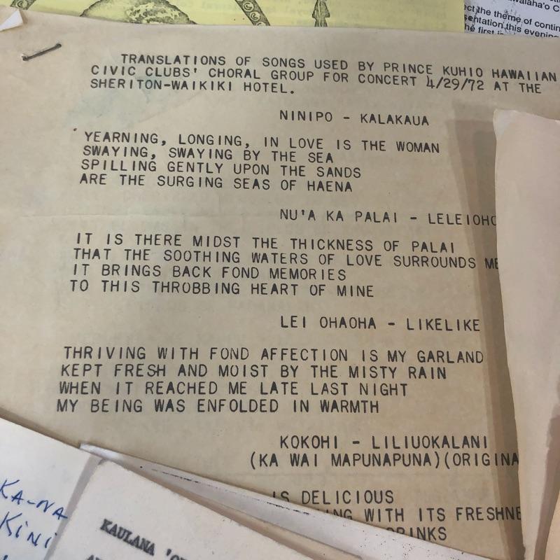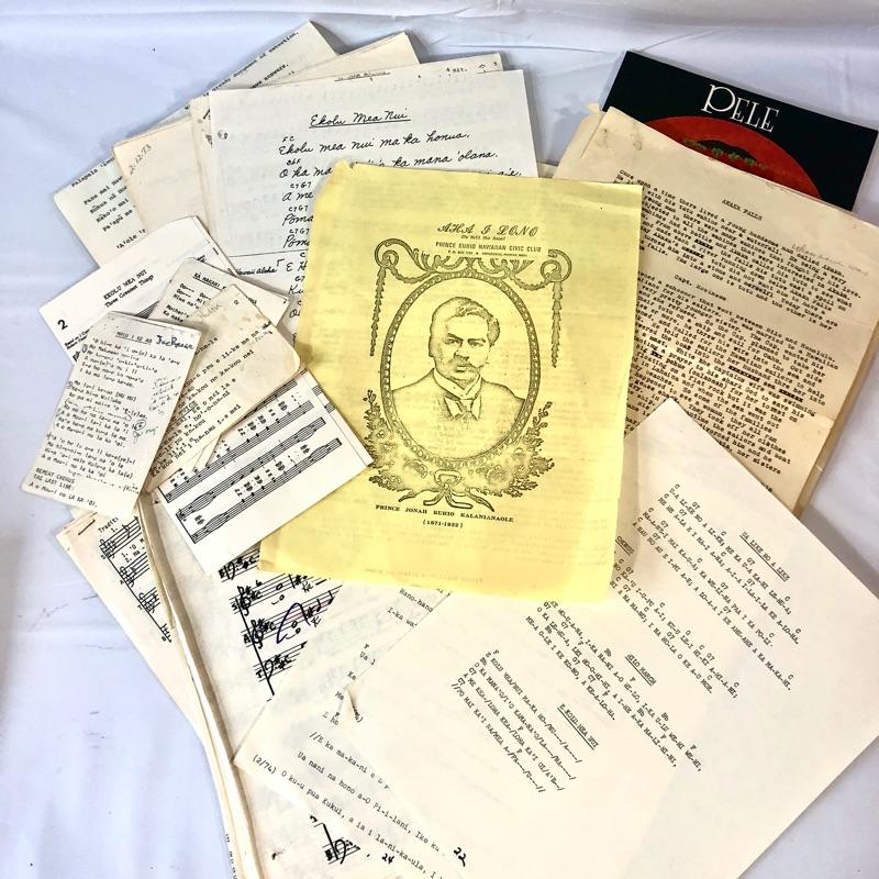 Transcribed Hawaiian folklore/mythology, Handwritten and typed Hawaiian sheet music, Selections from the Prince Kuhio Hawaiian Civic Club (Honolulu). Also includes software "Pele: Goddess of Hawai'i's Volcanoes" by Herb Kawainui Kane. Expanded ed. 71 pp.