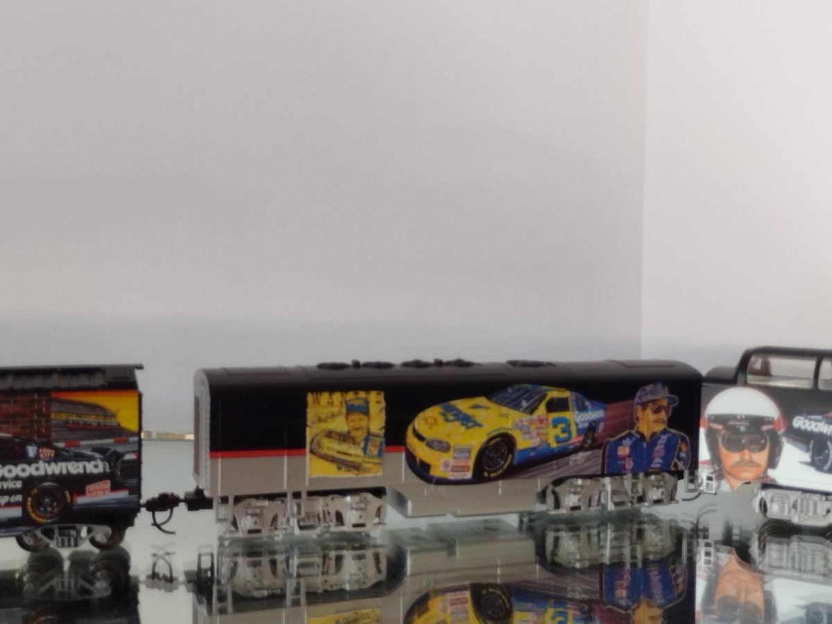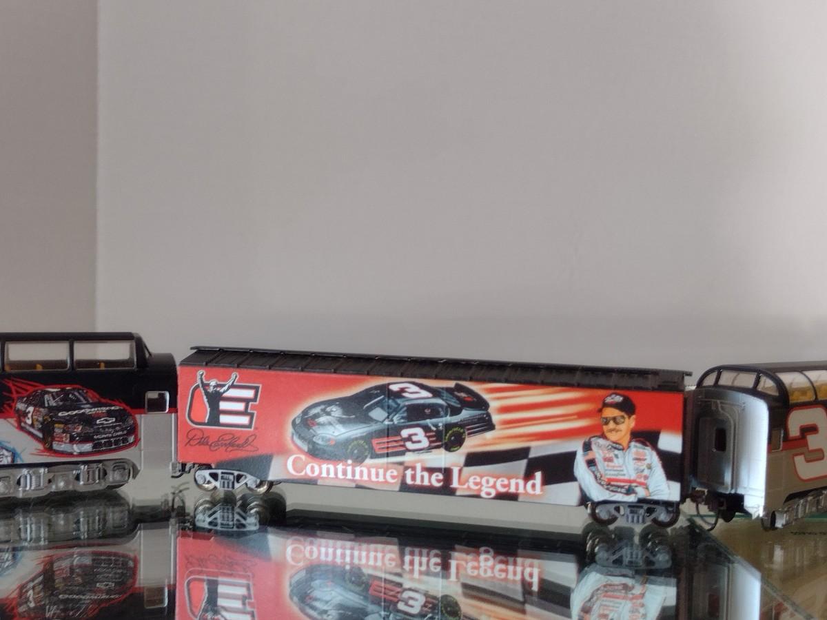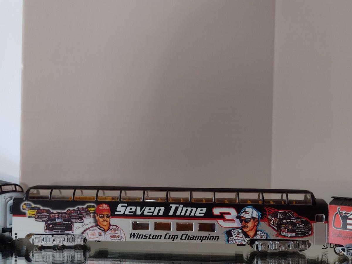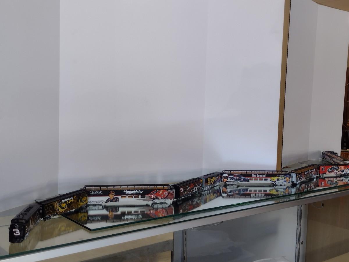 Hawthorne Village Dale Earnhardt Sr. HO Train Set. Eleven cars, track, transformer. Please see all pictures for selection. Cars range in size from 11 1/2" to 7". All eleven pieces have COA. In very good condition.