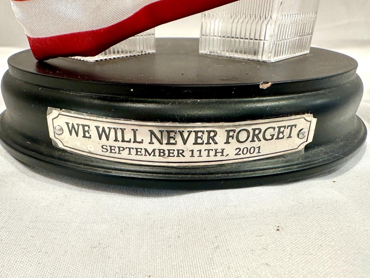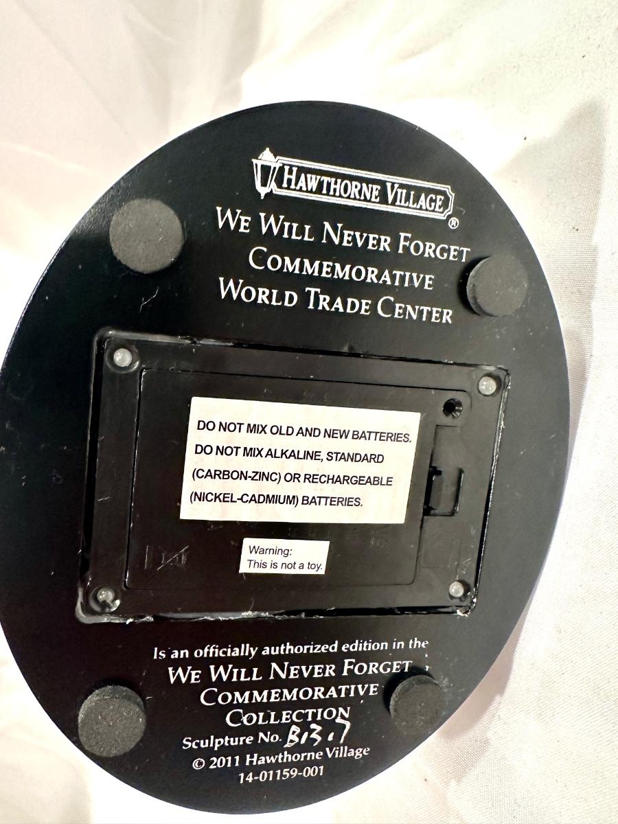 Commemorative 9/11 Twin Towers. We have not put batteries in so unaware if lights up.