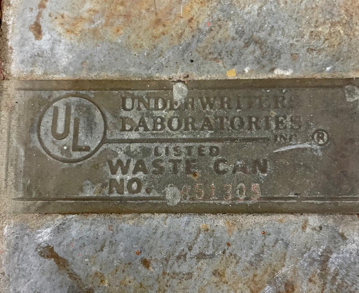 Used Eagle Oily Hazardous Waste Steel Step Receptacle Can Model 910-F. 6 Gallon size, foot pedal operated lid.