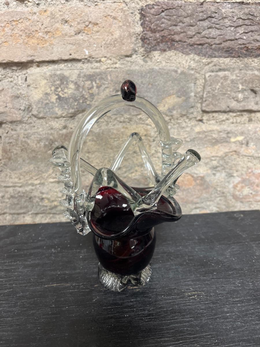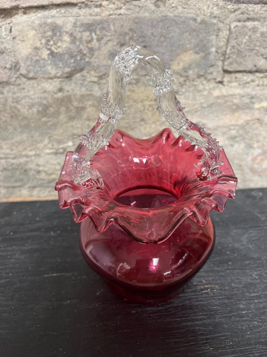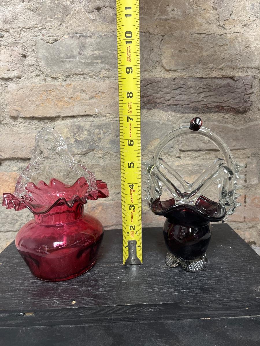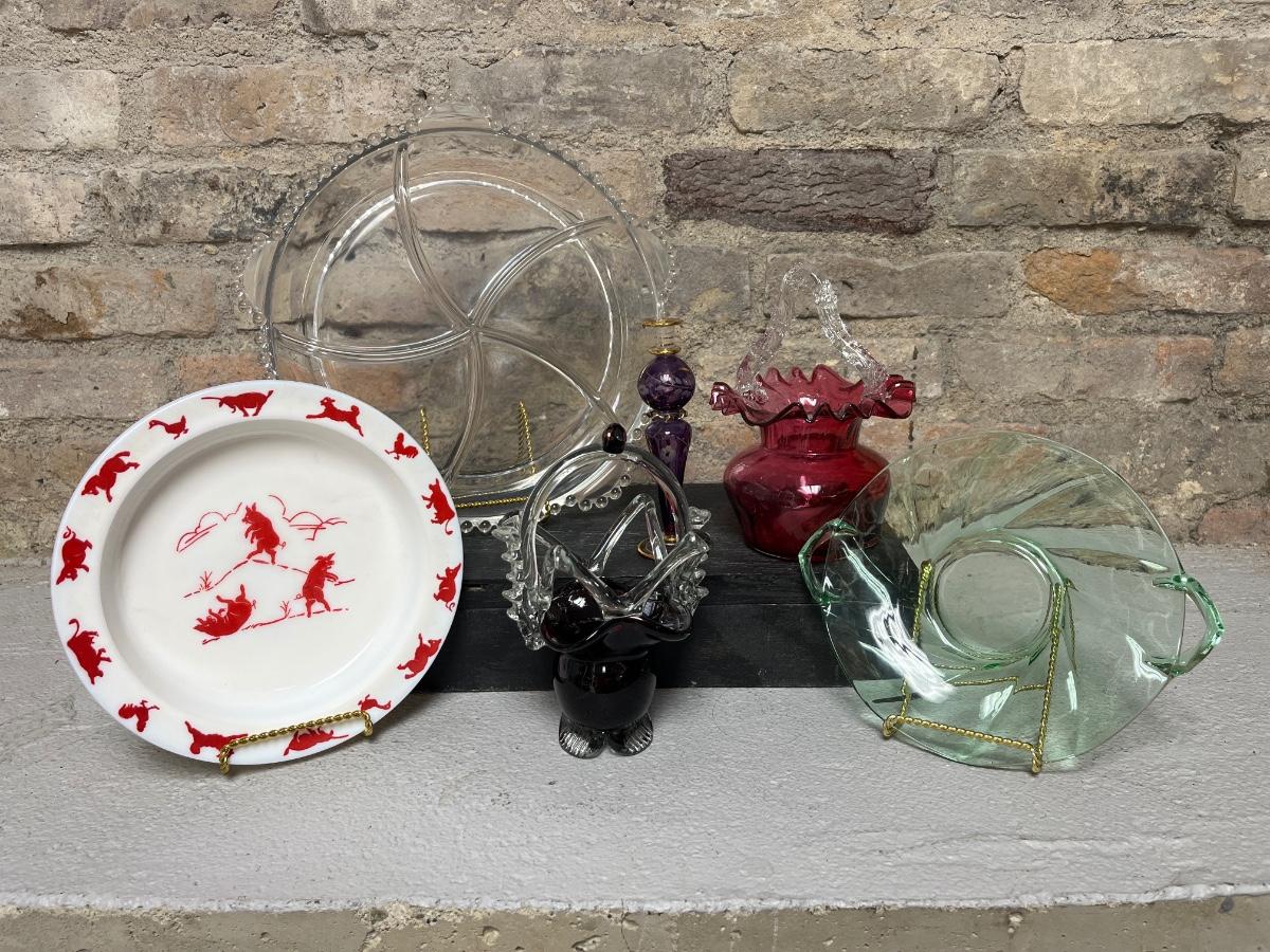 Vintage Hazel Atlas Three Little Piggies bowl, gorgeous large candlewick relish tray, green depression glass, art glass baskets and super delicate amethyst bud vase. the Cranberry basket has a very unusual thorn handle and the other is pulled italian. Awesome pieces!
