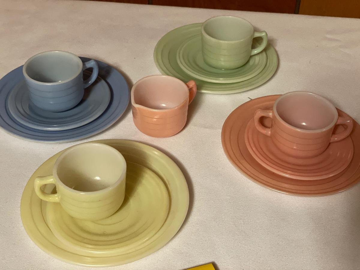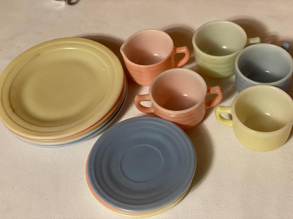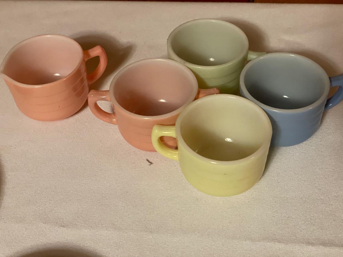 Hazel Atlas Children’s milk glass pastel tea set