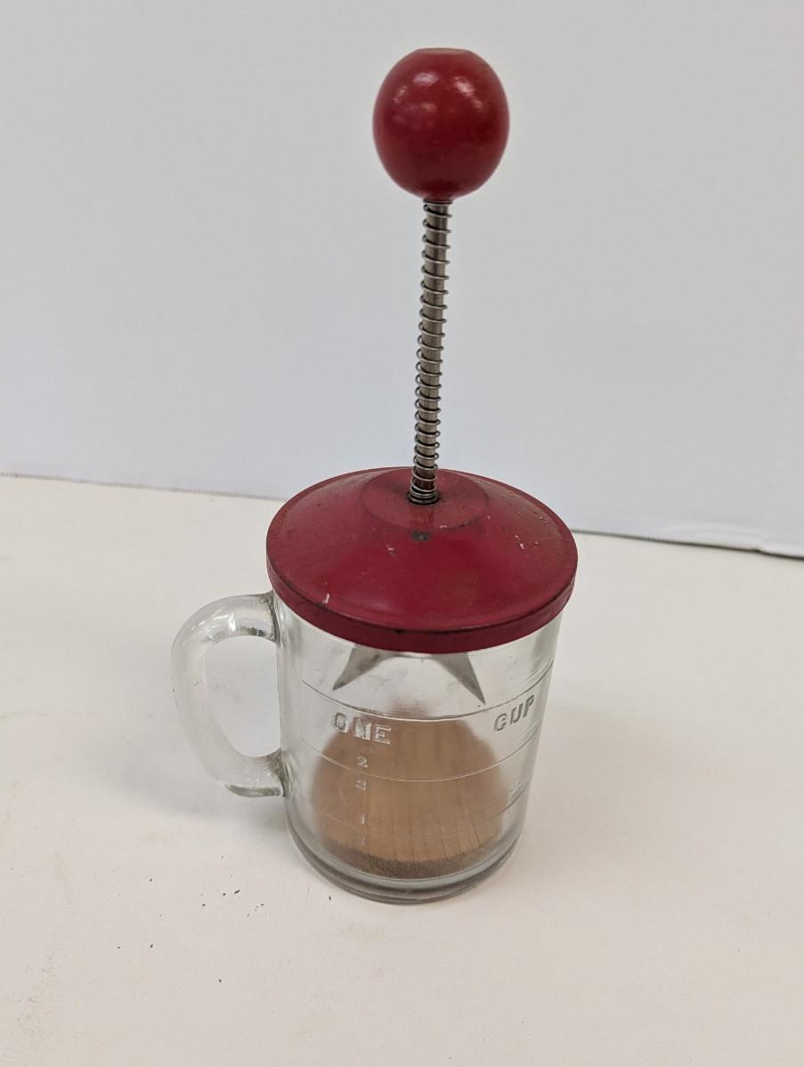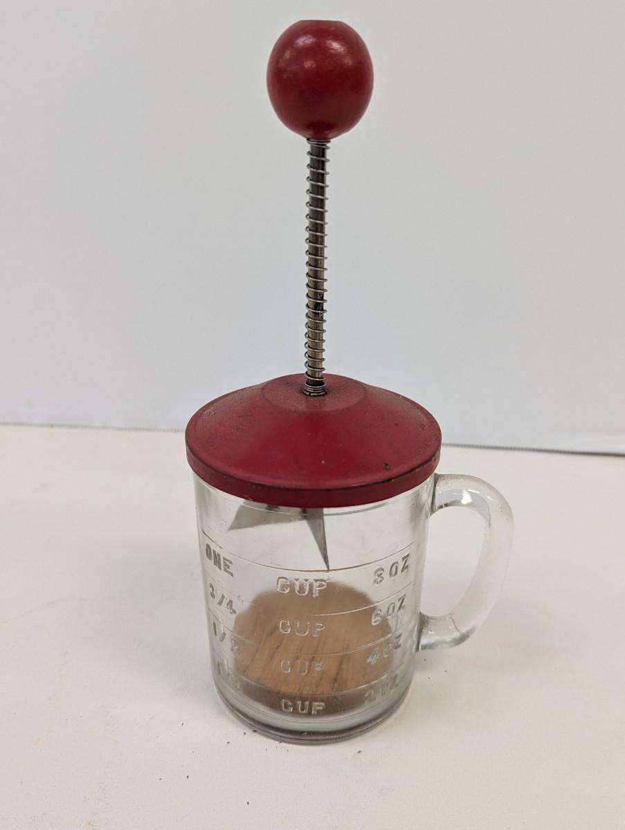 Hazel Atlas Federal Onion Nut Food Chopper Vintage Red Lid Stainless Blades Cup