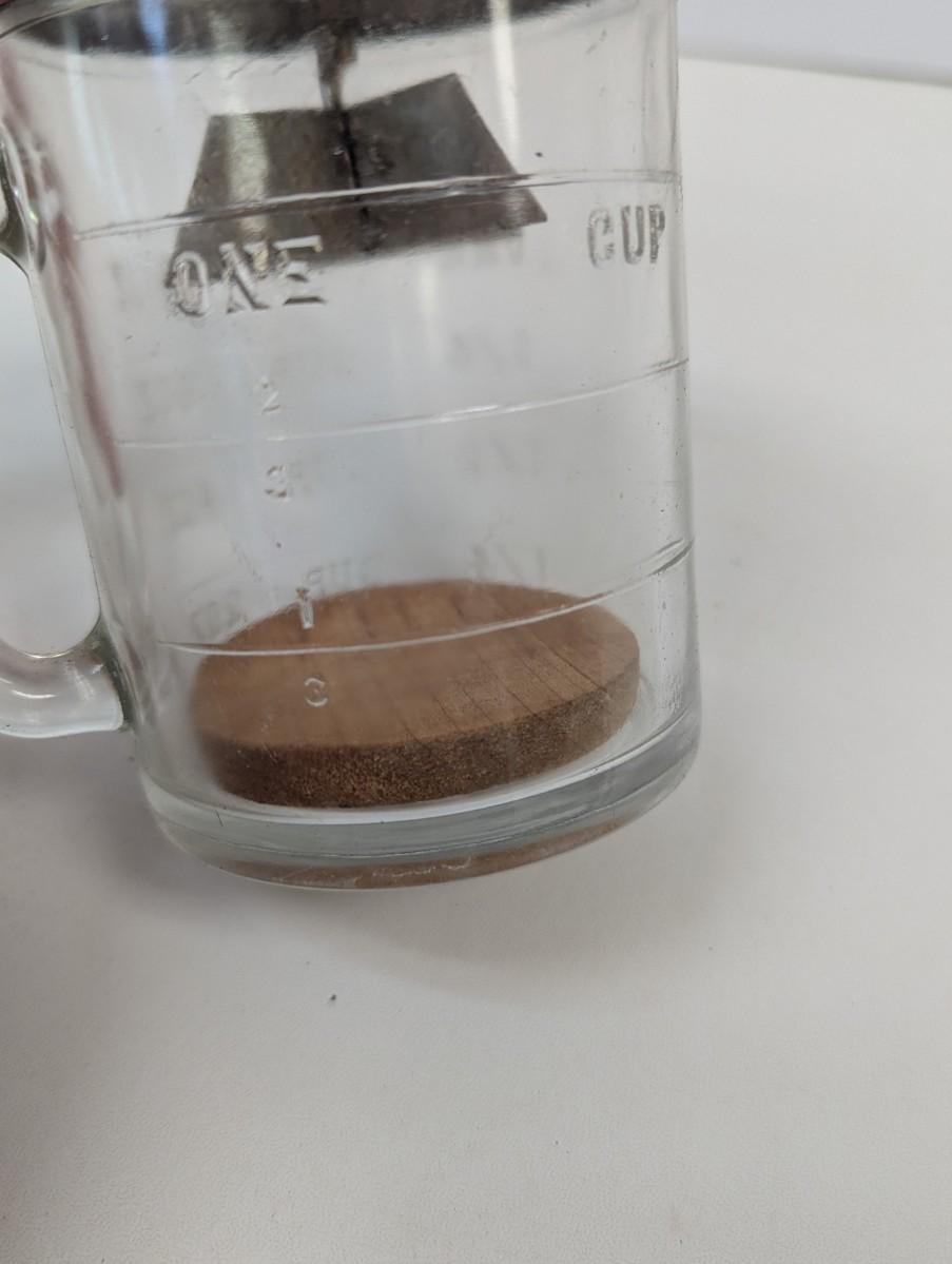 Metal construction with wooden knob. Wooden disc cup liner. Stainless steel blades.