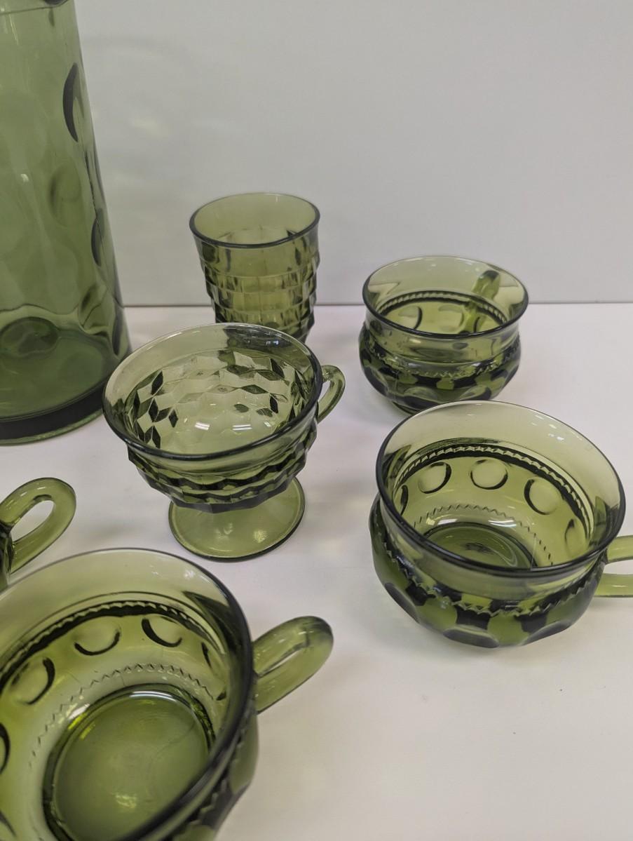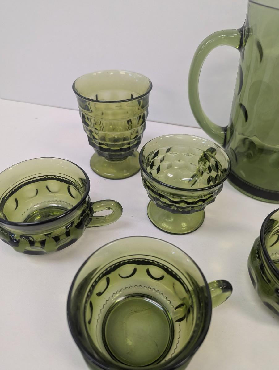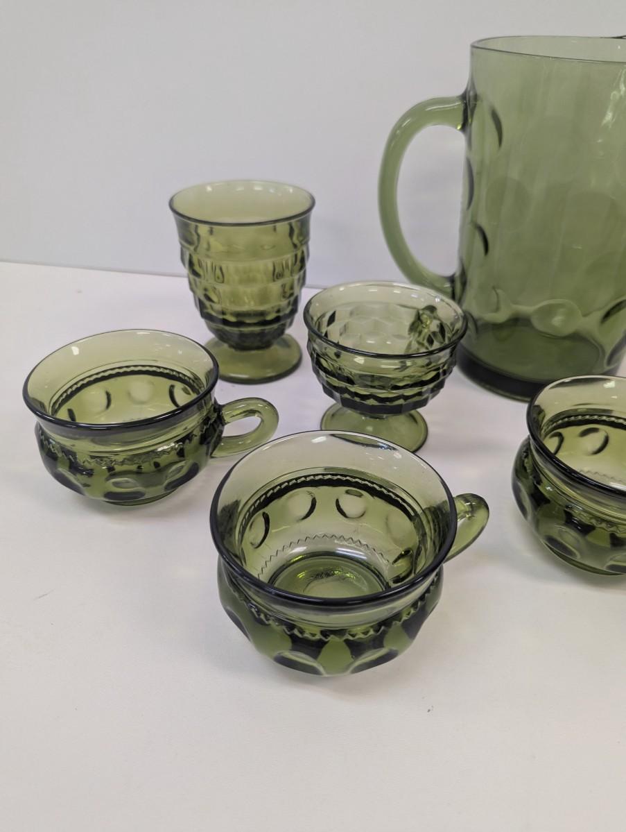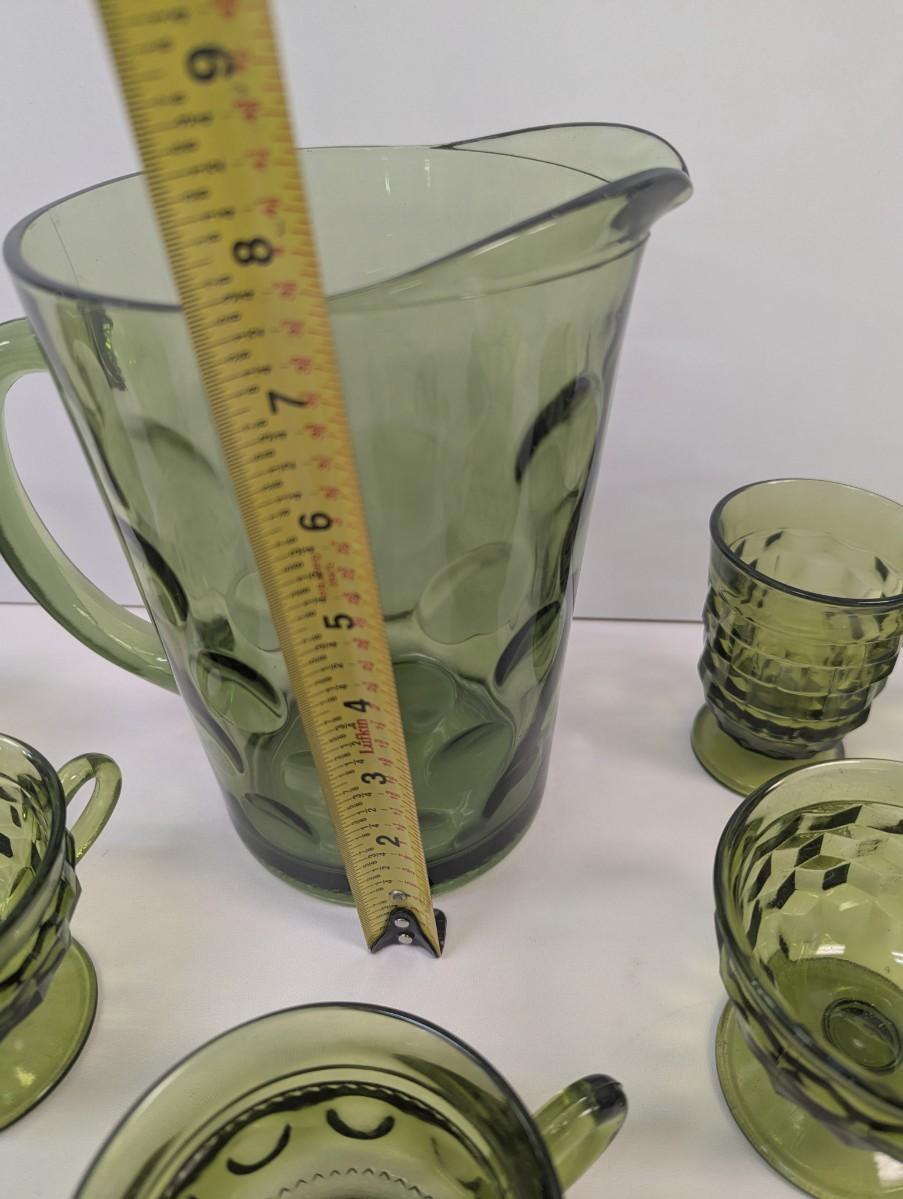 Hazel Atlas Green Coin Dot Water Pitcher & Glasses