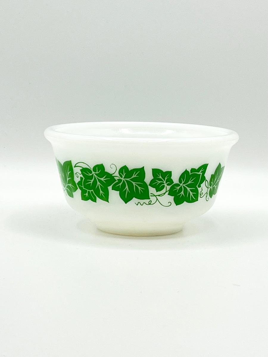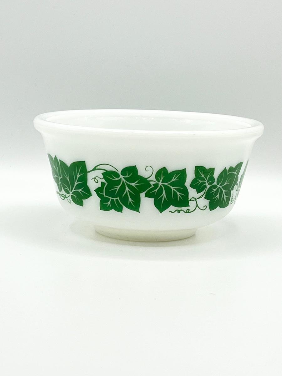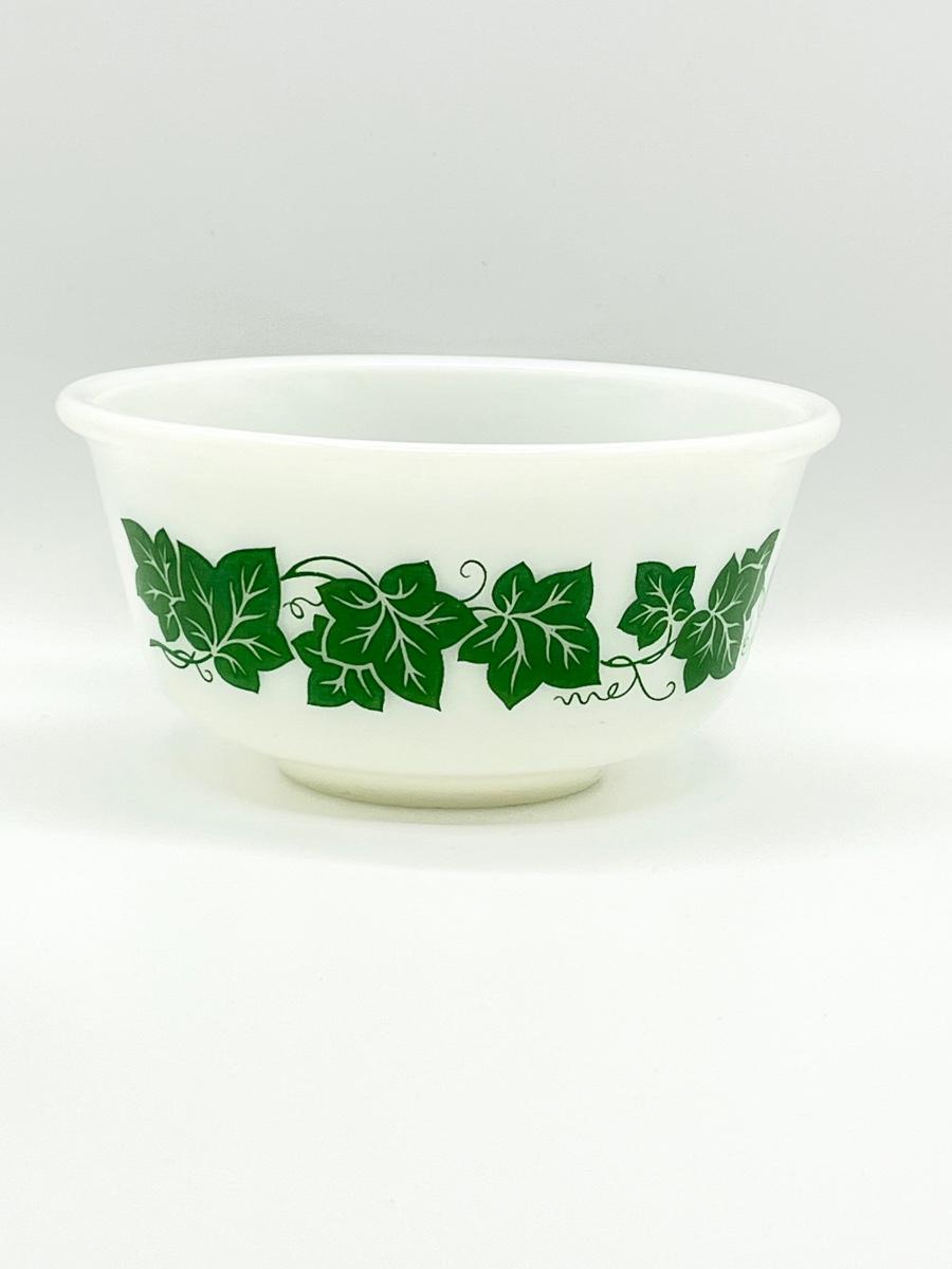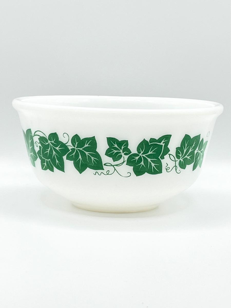 HAZEL ATLAS ~ Green Ivy ~ Milk Glass Nesting Mixing Bowls ~ Set Of Four (4)