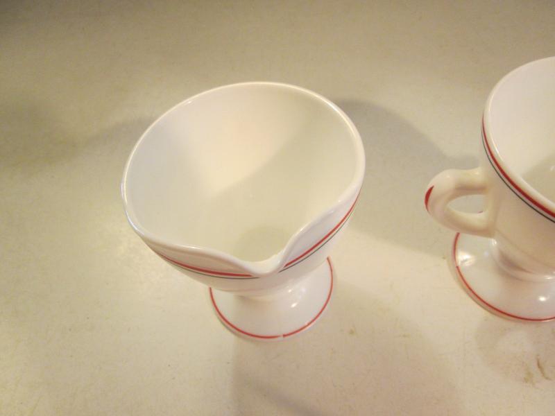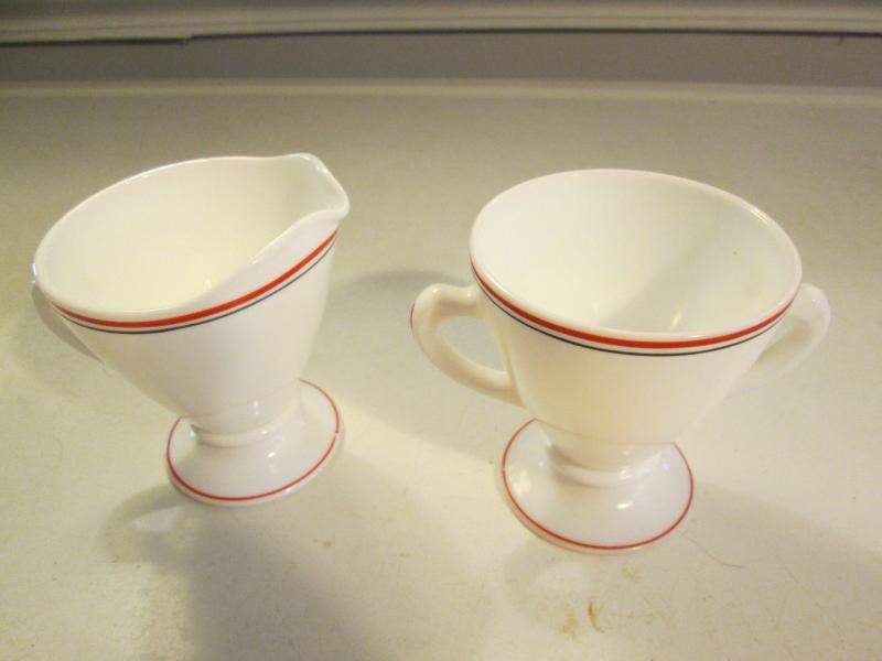 Modern Tone White Red Trim Open Sugar Bowl Creamer Set