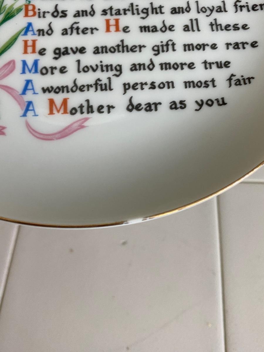 Vintage Mother Poem Quote Collector Gift Plate. Good condition, there is a worn spot in the gold edge, not a chip.