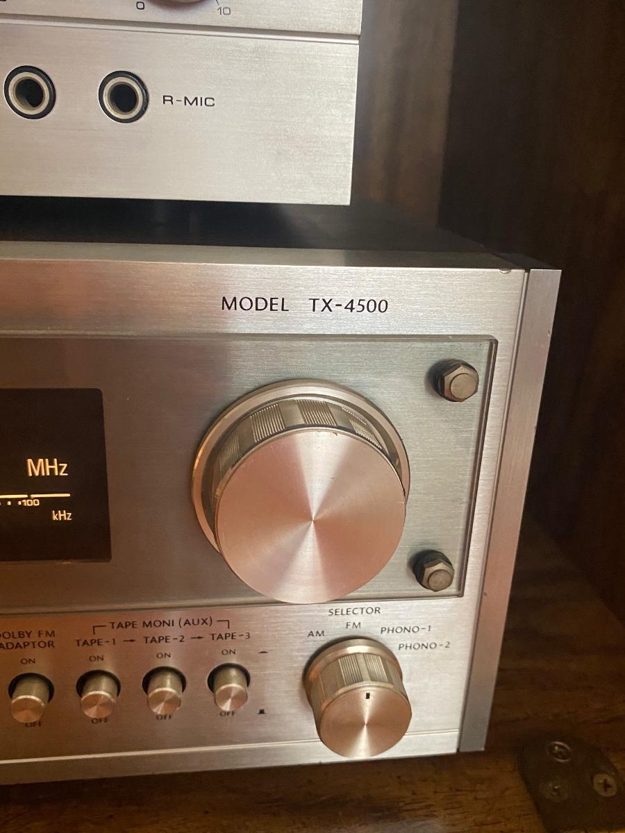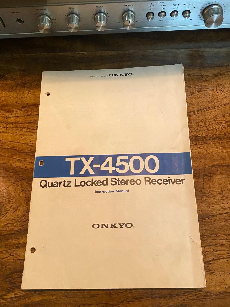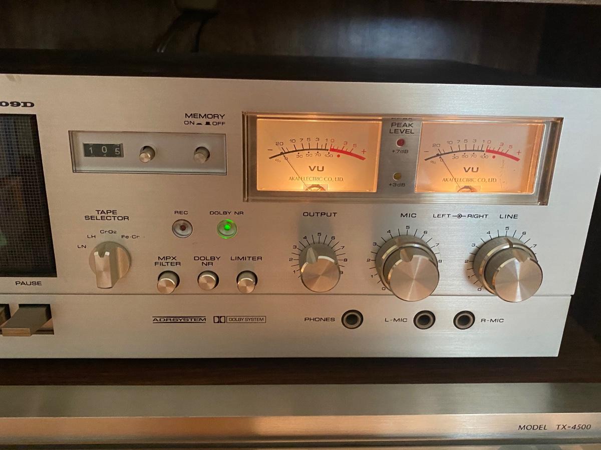 Vintage ONKYO TX-4500 Stereo Receiver & AKAI GXC-709D Cassette Deck with Speakers. Both tested and work. Tape deck may need to be cleaned due to age, tape tested was wobbly sounding at first and evened out a little after playing for a bit. There is a little static when knobs are turned probably also due to dust and age. In good condition. Receiver gets loud and speakers hold up. No name on speakers or speaker boxes. Some of the display lights on receiver are not lighting up. Owner's manual for both.