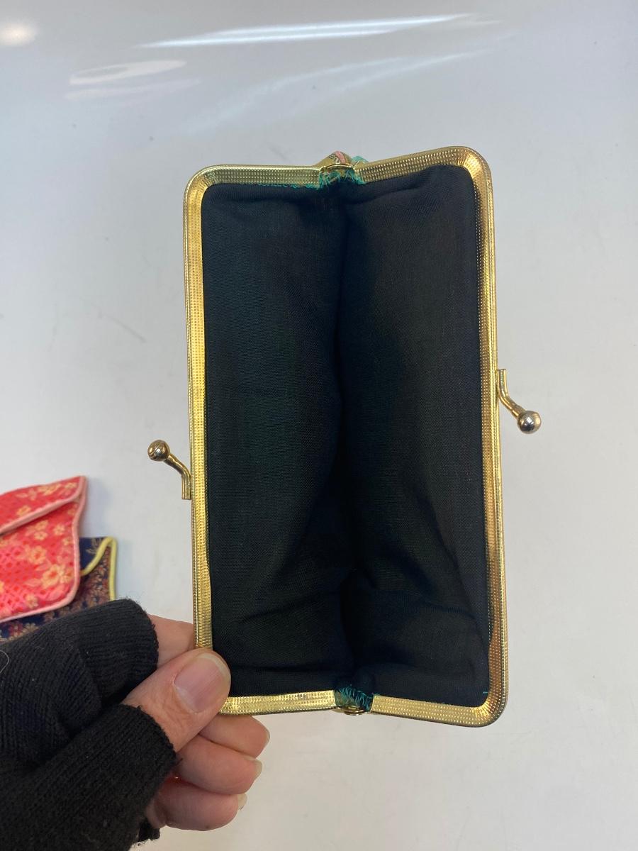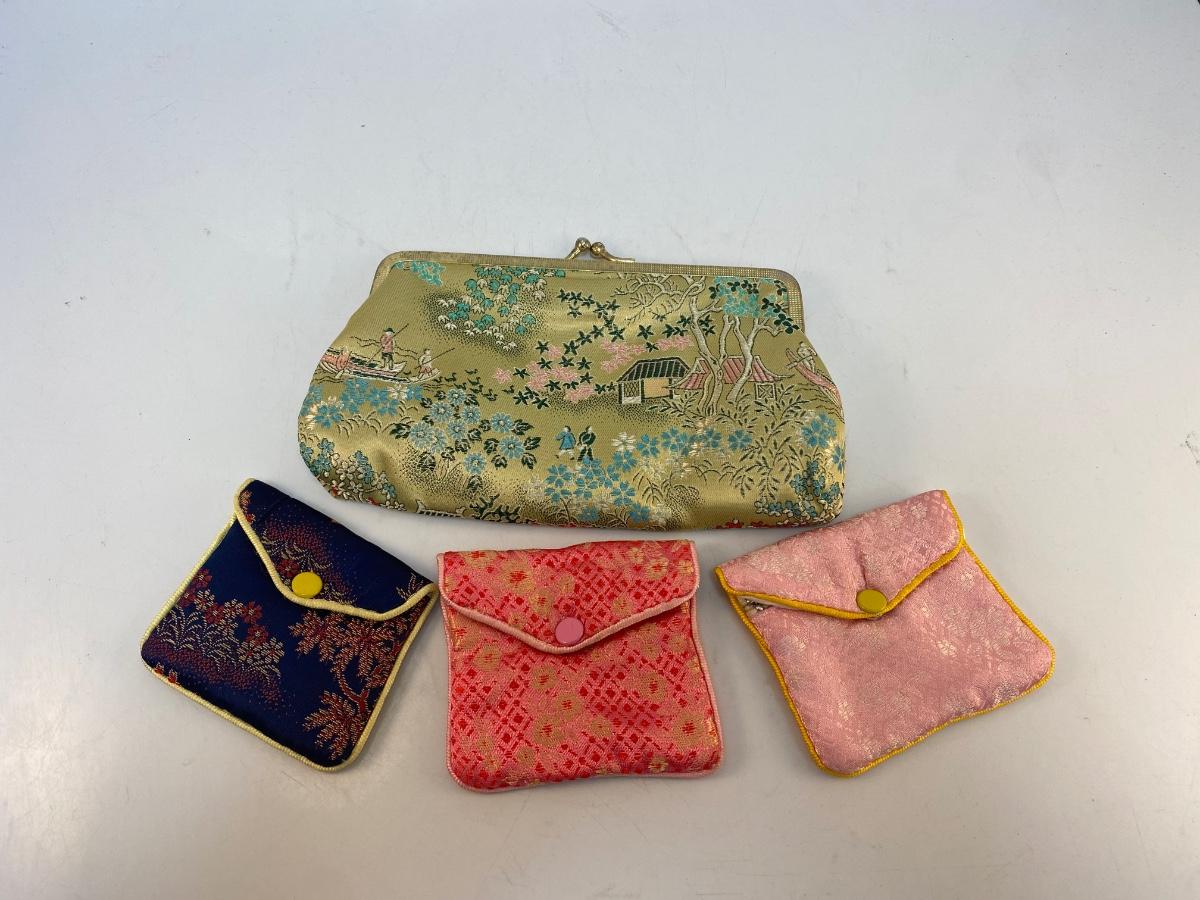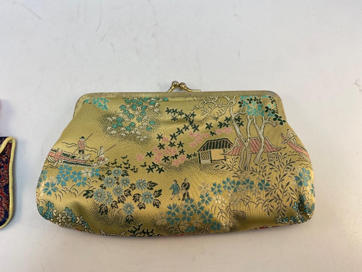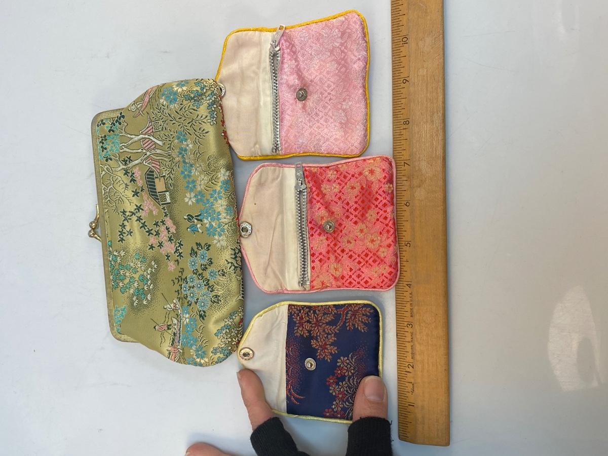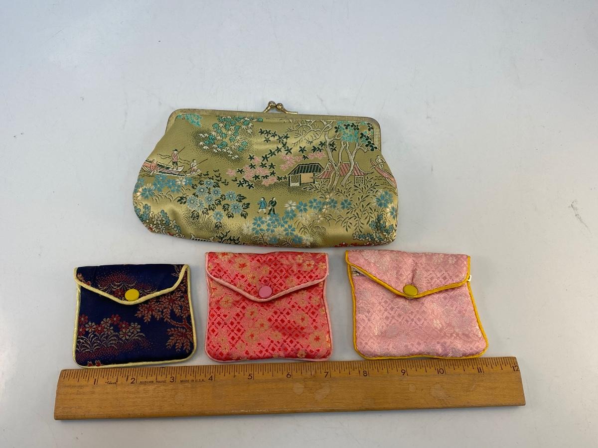 Vintage Asian Inspired Embroidered Coin Purse Clutch Lot. In good vintage condition. Two of the small coin purses have zipper closure along with the snap. See photos for patterns and sizes.