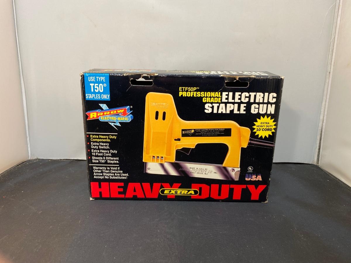 Arrow Professional Grade Electric Corded Staple Gun Extra Heavy Duty. In original box. Untested but looks to be in good condition.