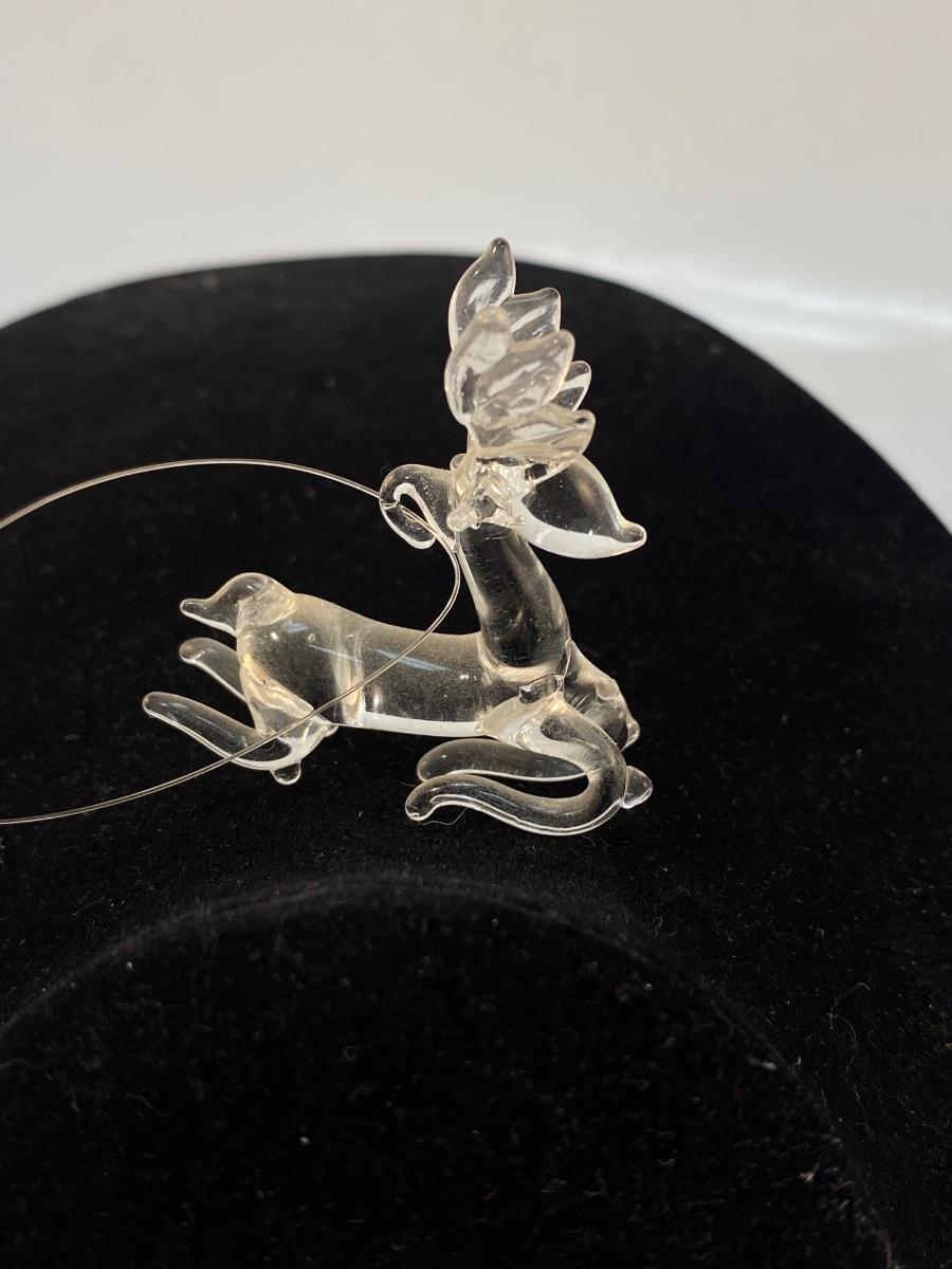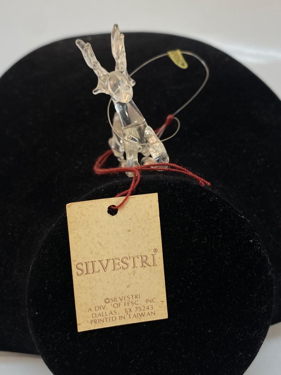 Silvestri Hand Crafted Blown Glass Reindeer Ornament Figurine. Original Silvestri tag attached. No chips or repairs.