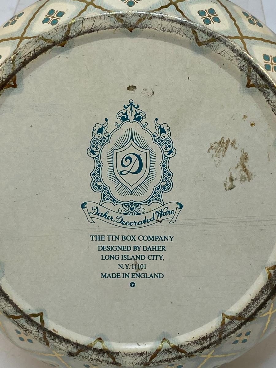 Vintage Round Daher Decorated Ware Powder Tin Metal Flowers Checkered