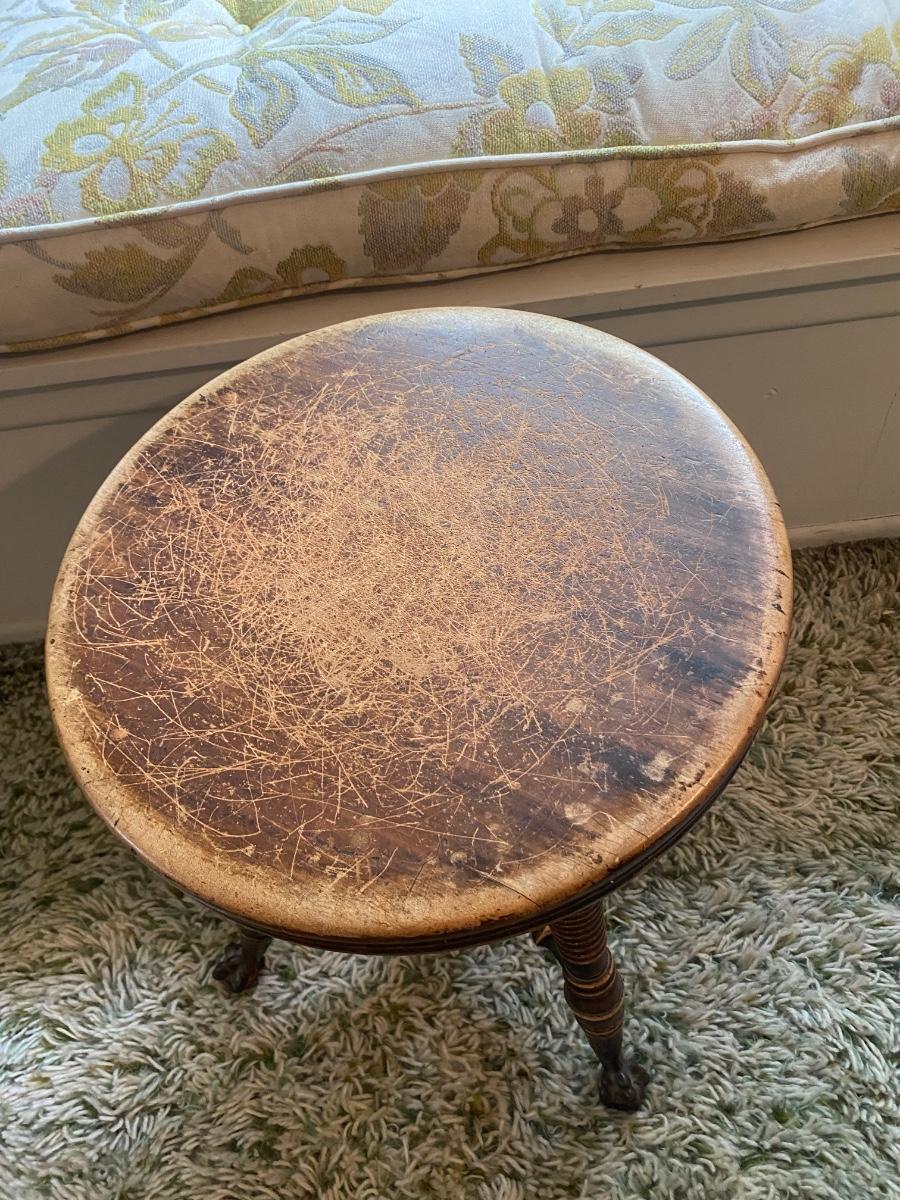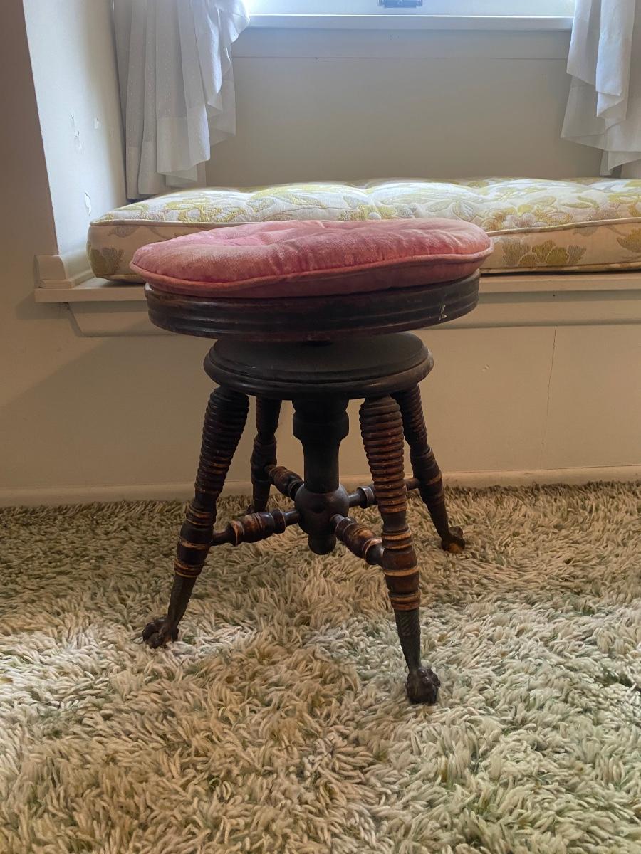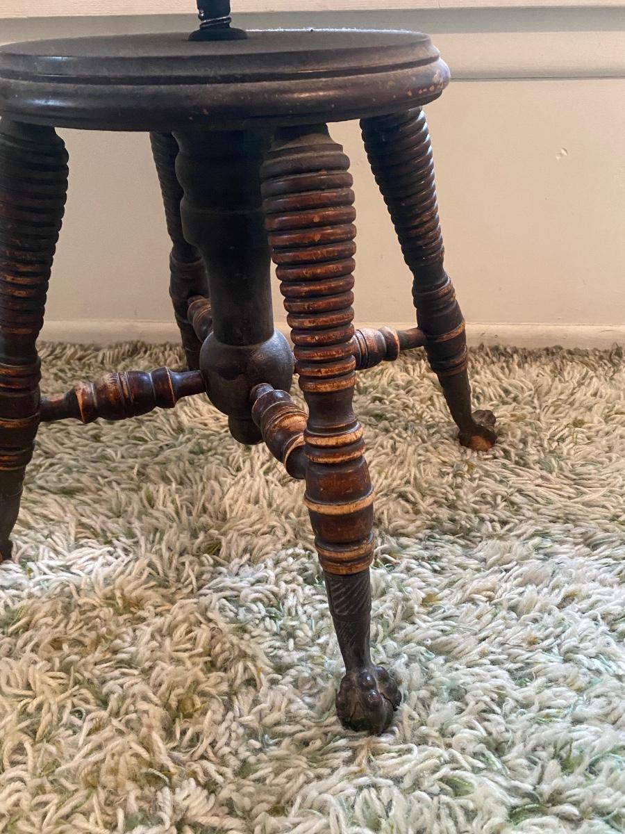 Small Victorian Piano Stool adjustable Seat Cast Iron Claw Foot Feet