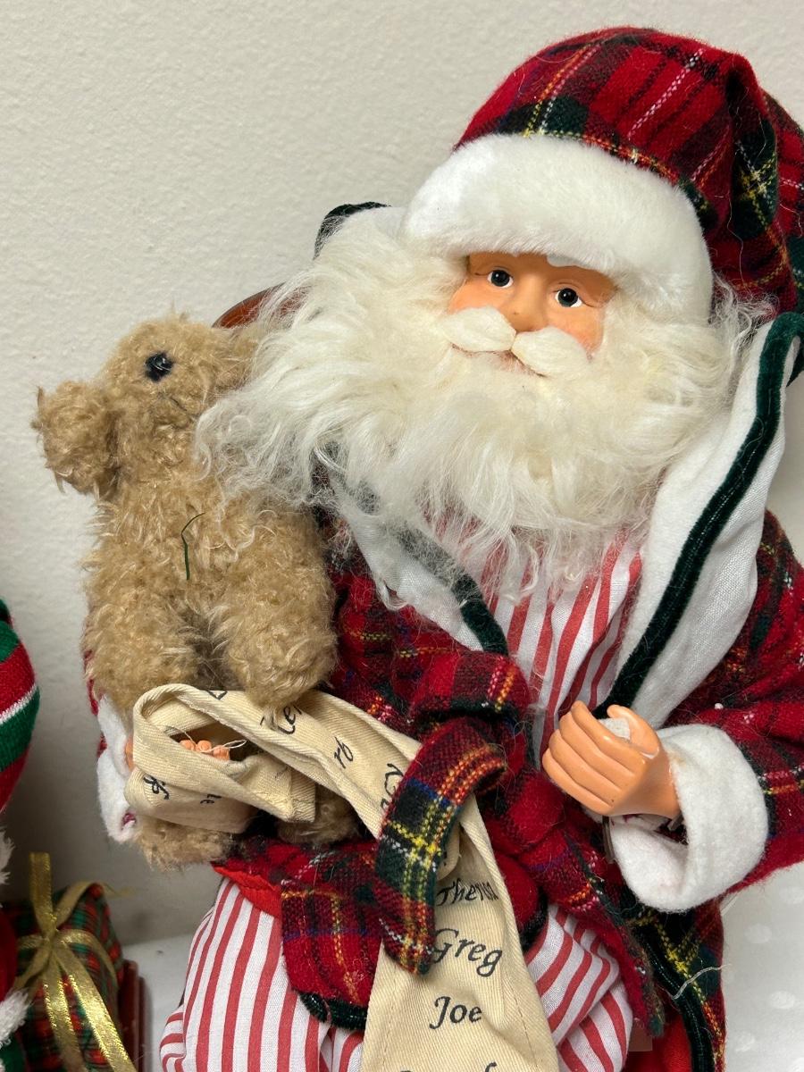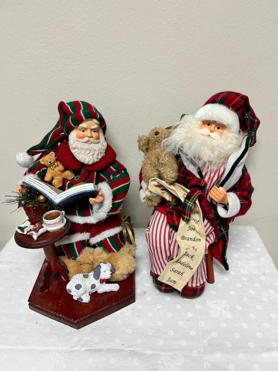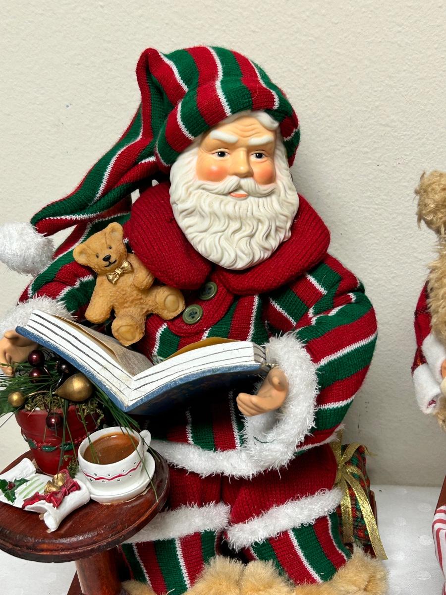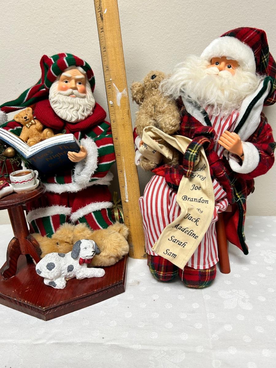 Pair of Pajama Wearing Santa Claus Christmas Holiday Figurine Decor. No music or lights. In previously displayed condition.