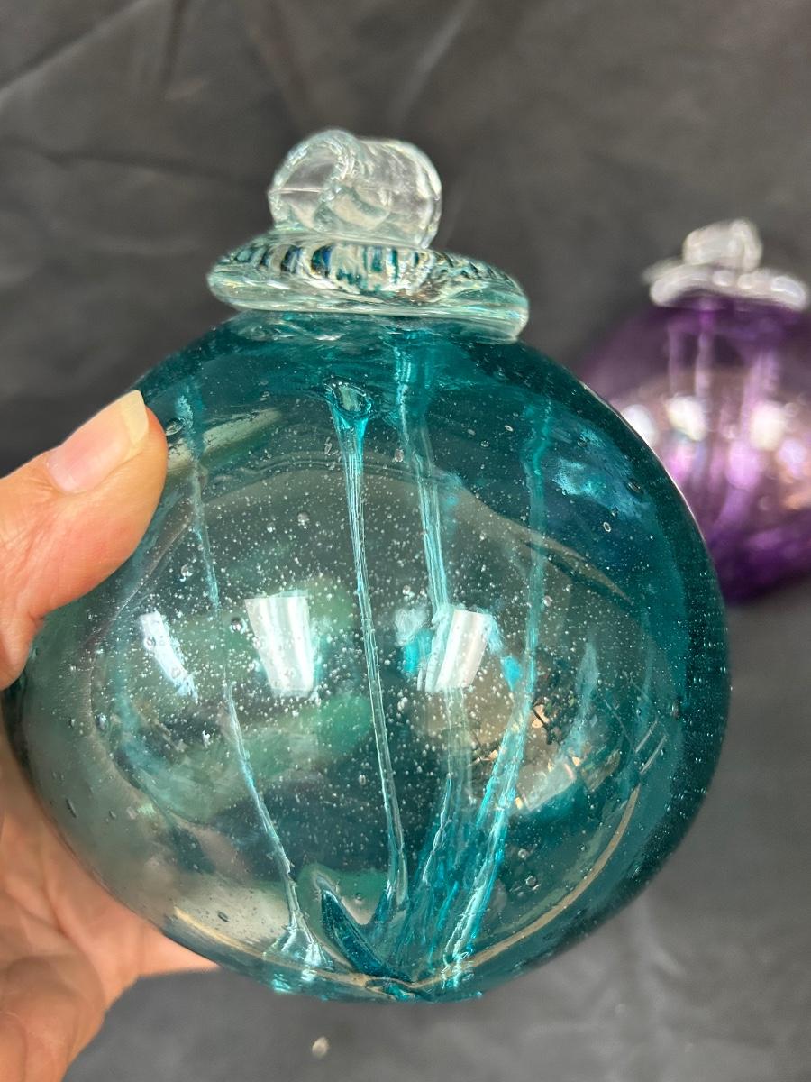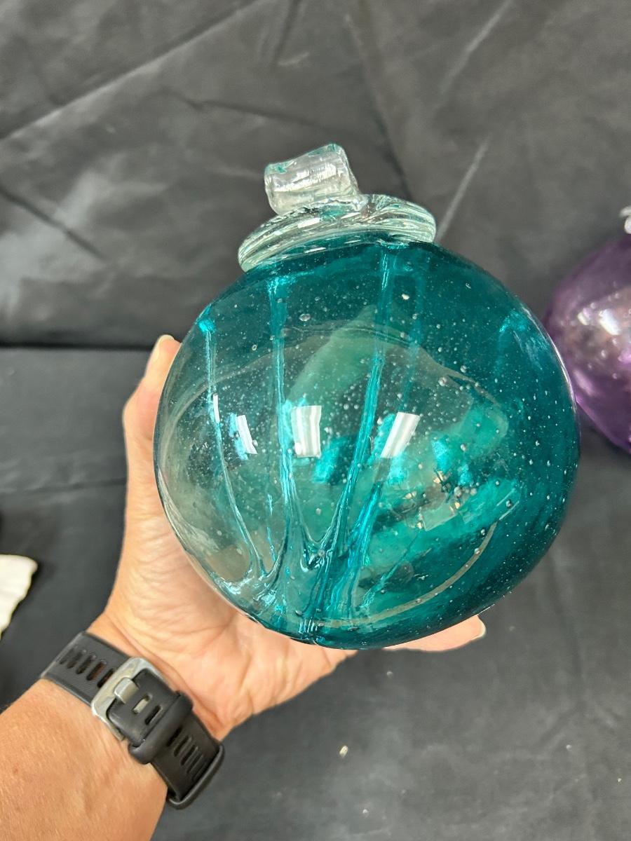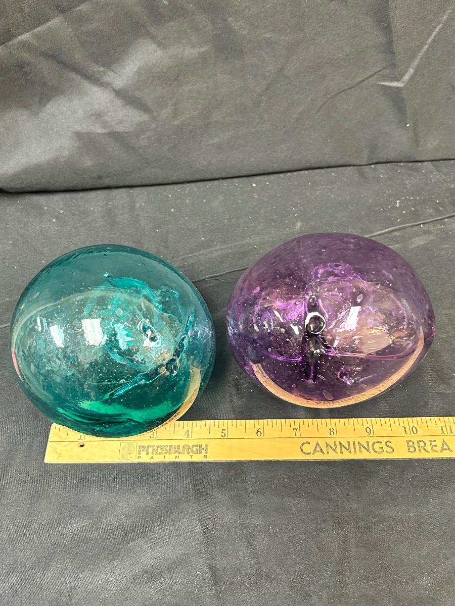 Turquoise Blue & Purple Blown Art Glass Hanging Orbs Fishing Net Floats