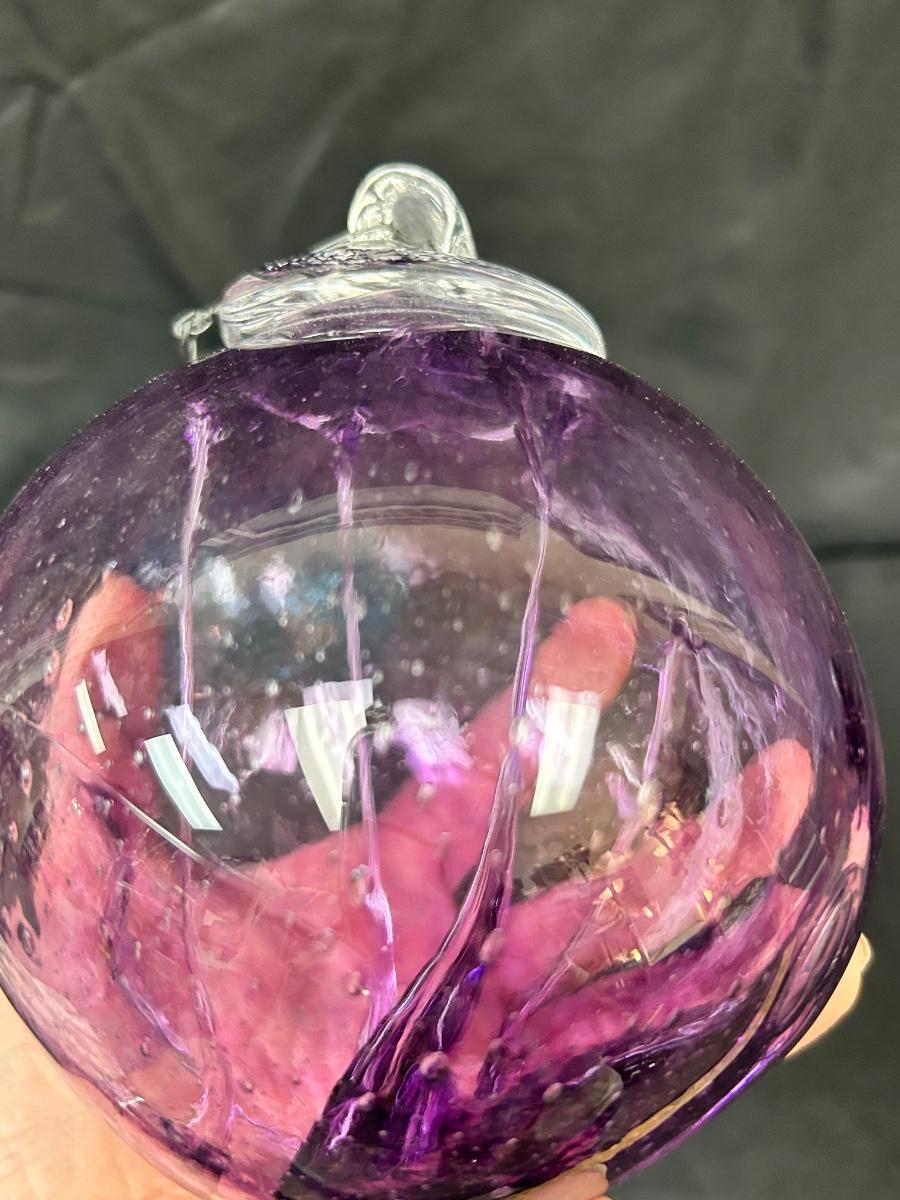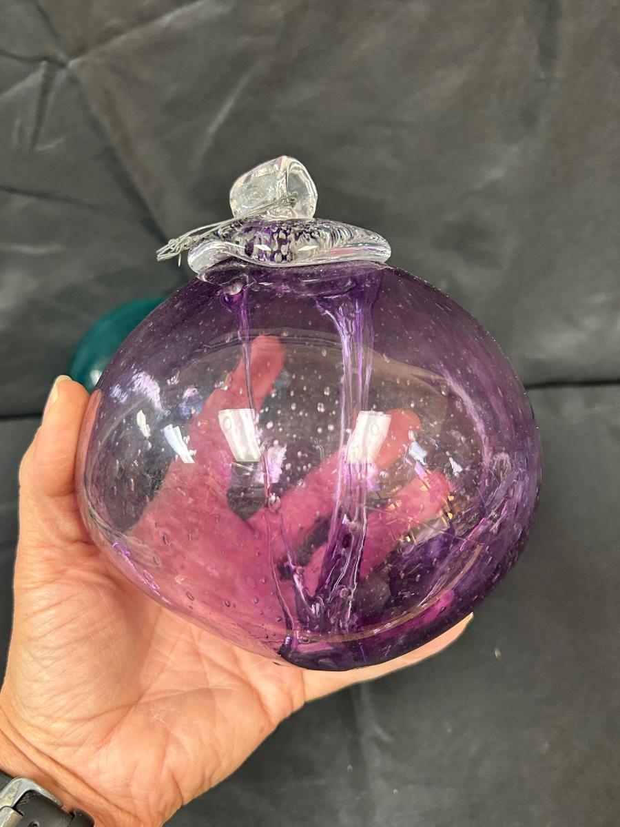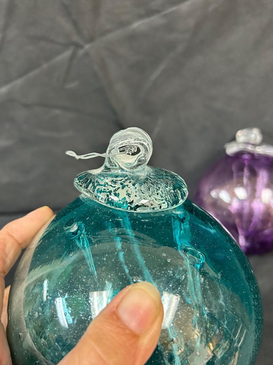 Turquoise Blue & Purple Blown Art Glass Hanging Orbs Fishing Net Floats