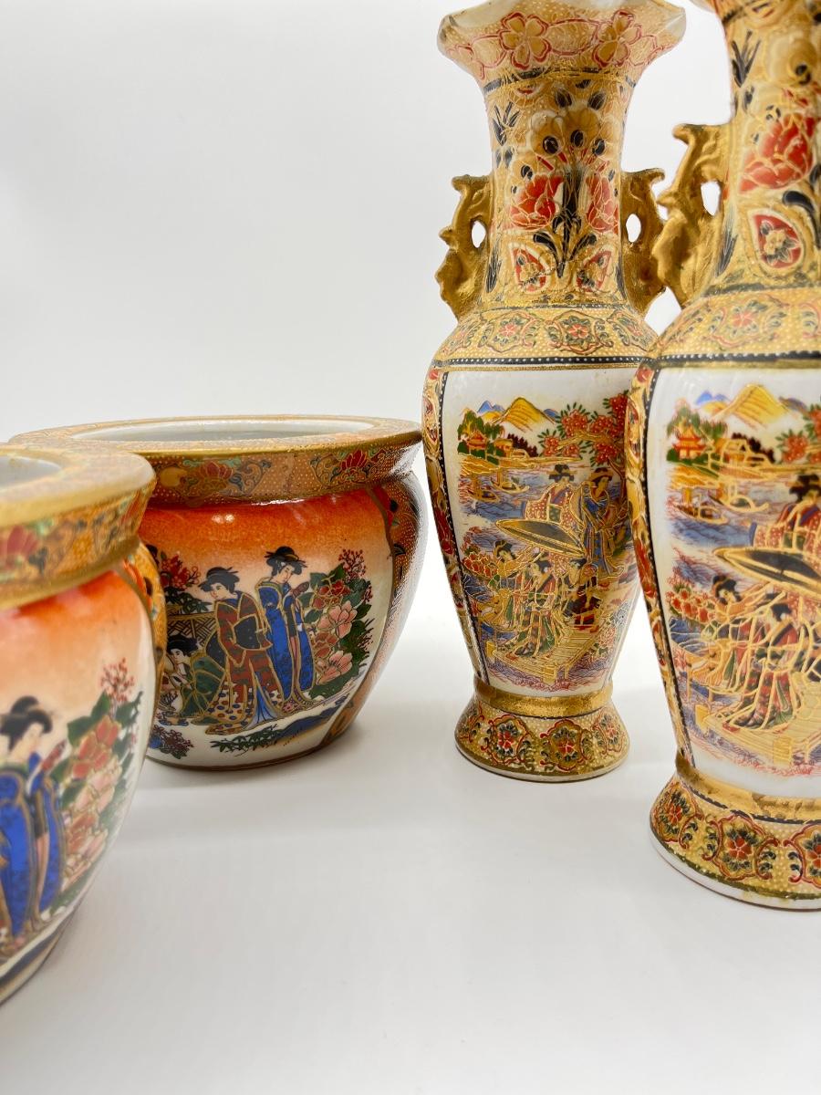 Pair ~ Satsuma Geisha Ladies Planter & Pair ~ Satsuma Vase