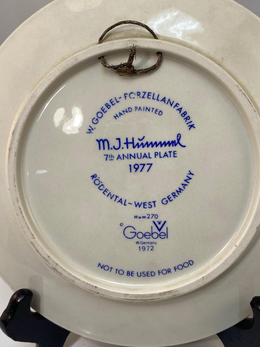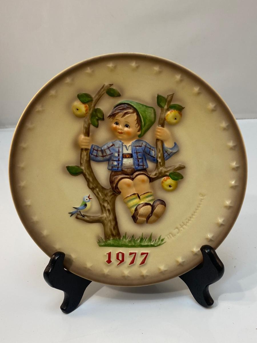 Vintage 1977 MJ Hummel 7th Annual Collector Plate Goebel W. Germany HUM270 Apple Tree Boy. In good displayable condition. Dusty from previous display and light crazing from age.