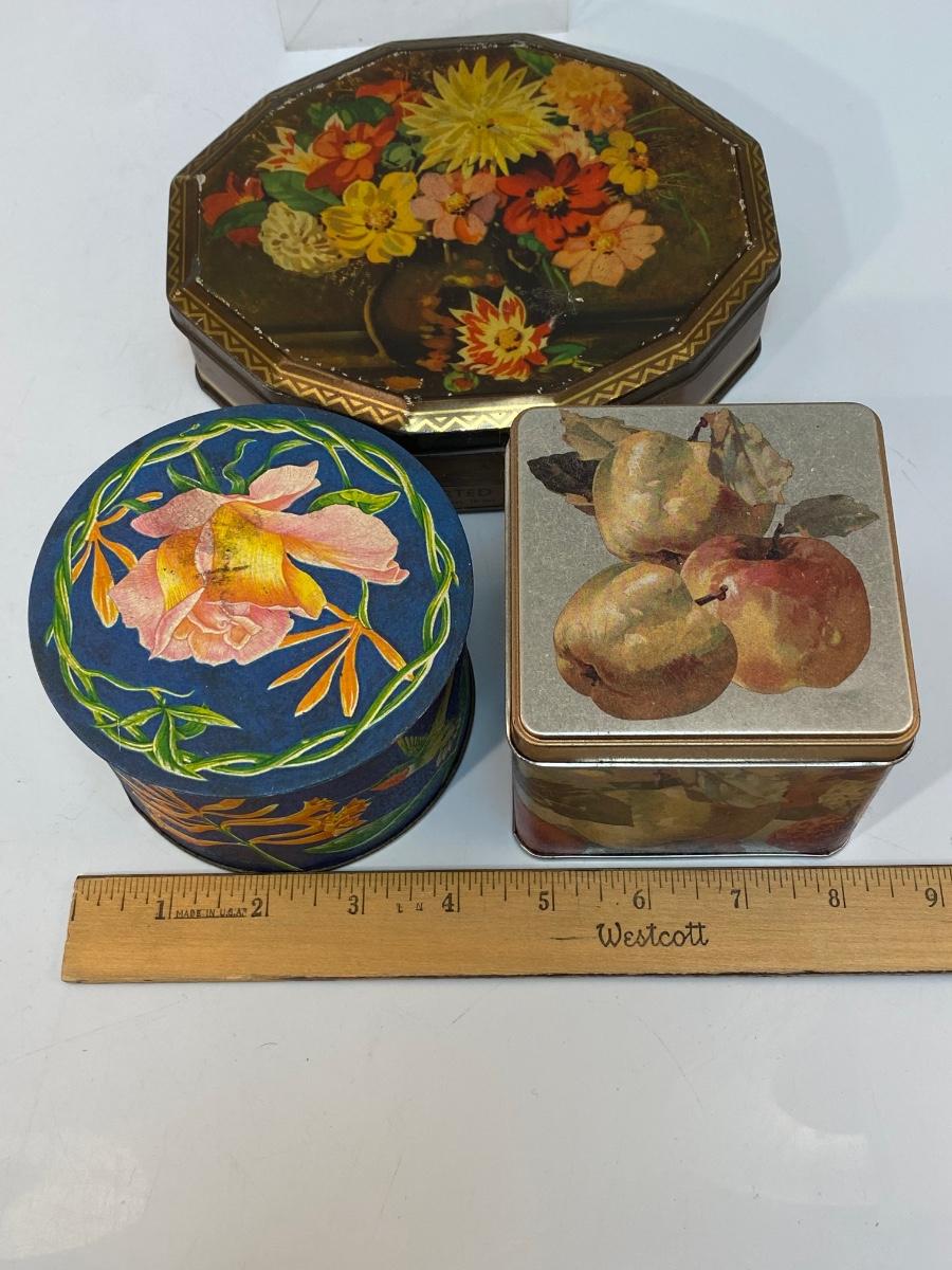 Mixed Lot of Three Small Collector Decorative Tins. In good vintage condition.