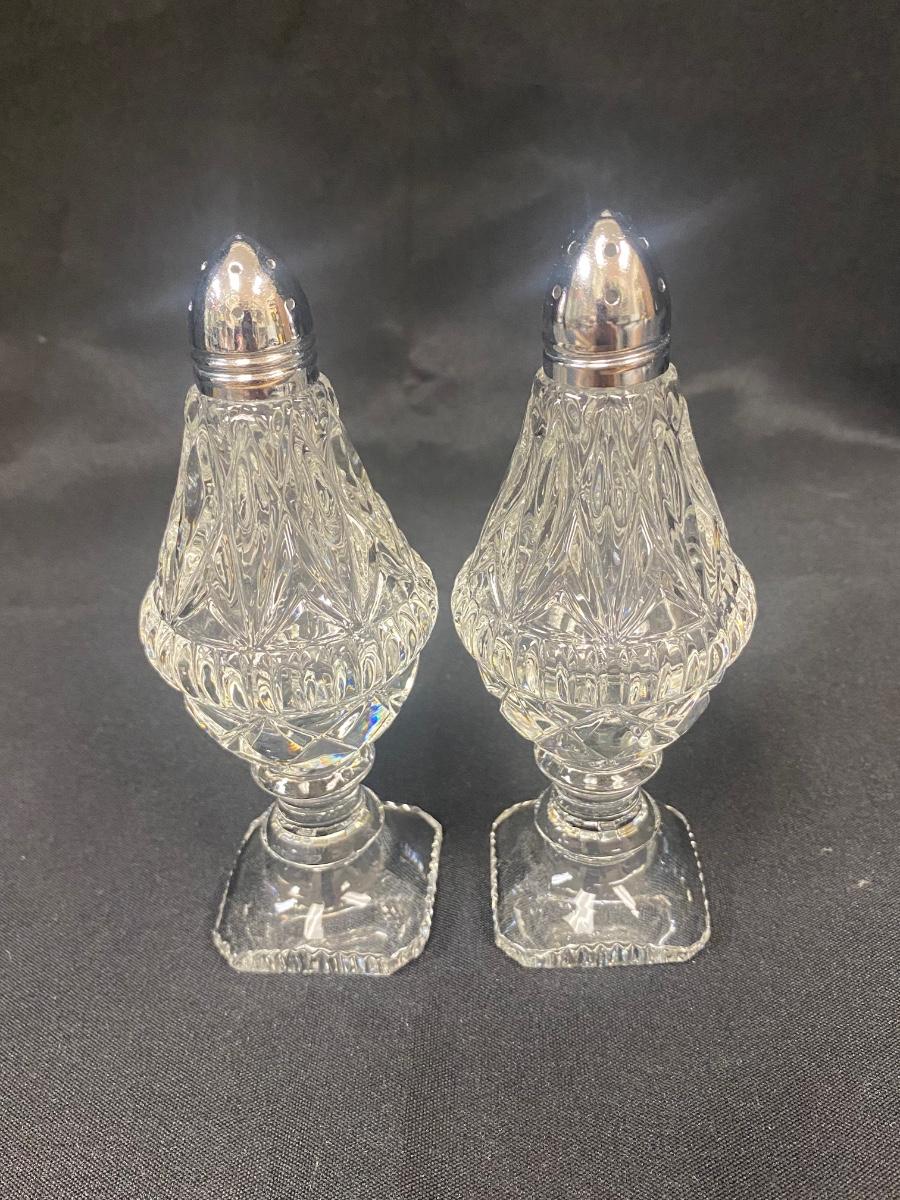 Pair of Cut Crystal Glass Salt & Pepper Shakers