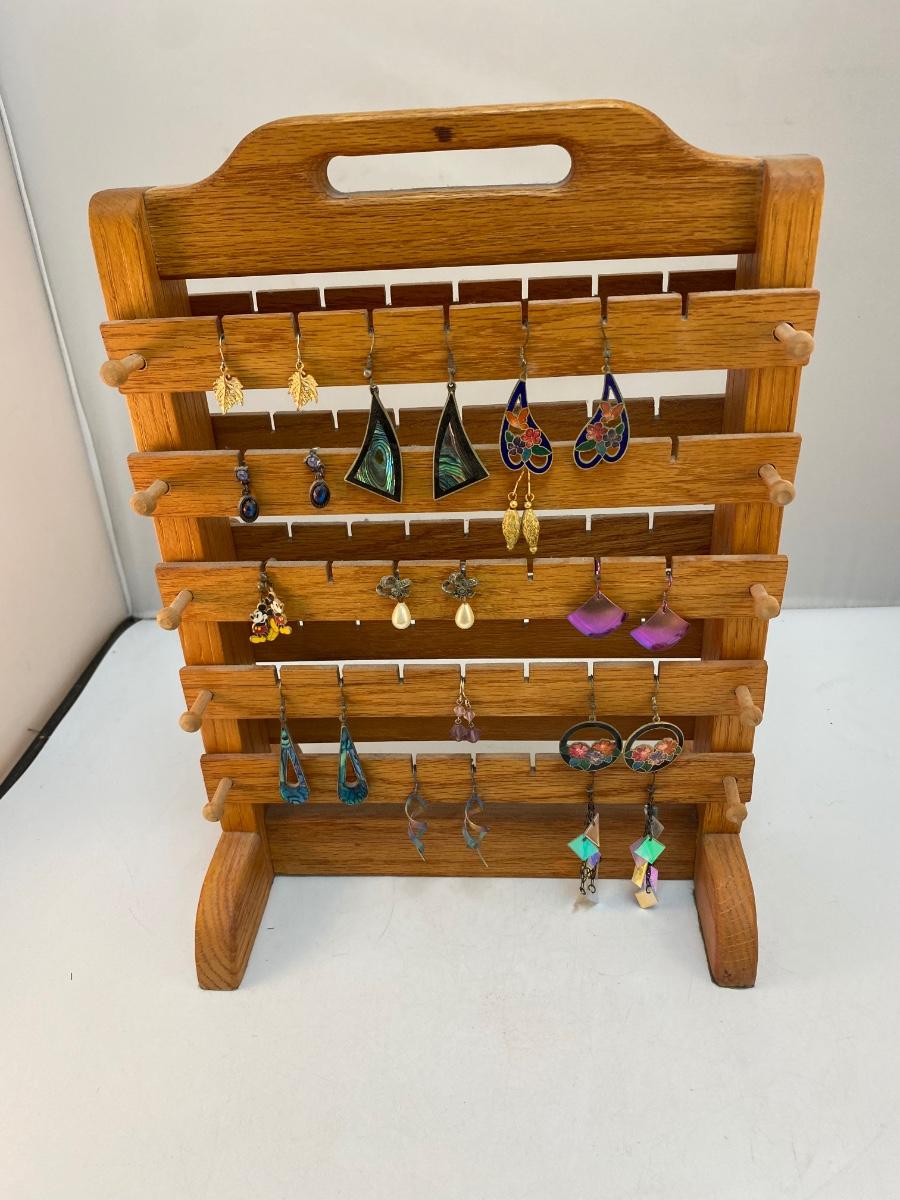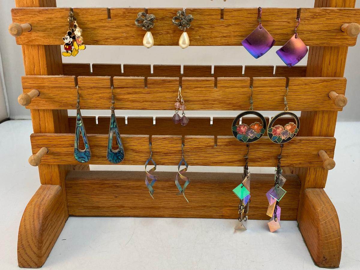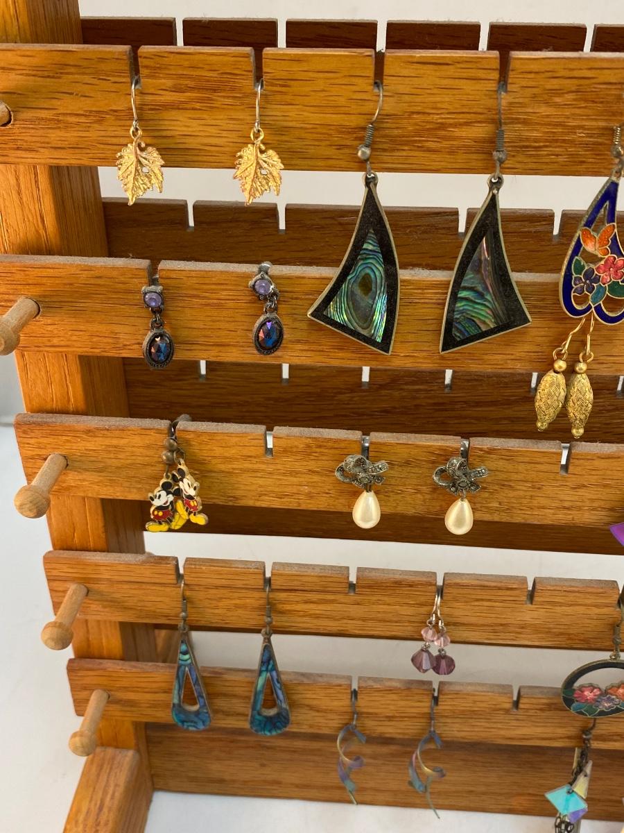 Lot of Retro Earrings Jewelry Holder Organizer Rack Variety Cloisonné Disney etc