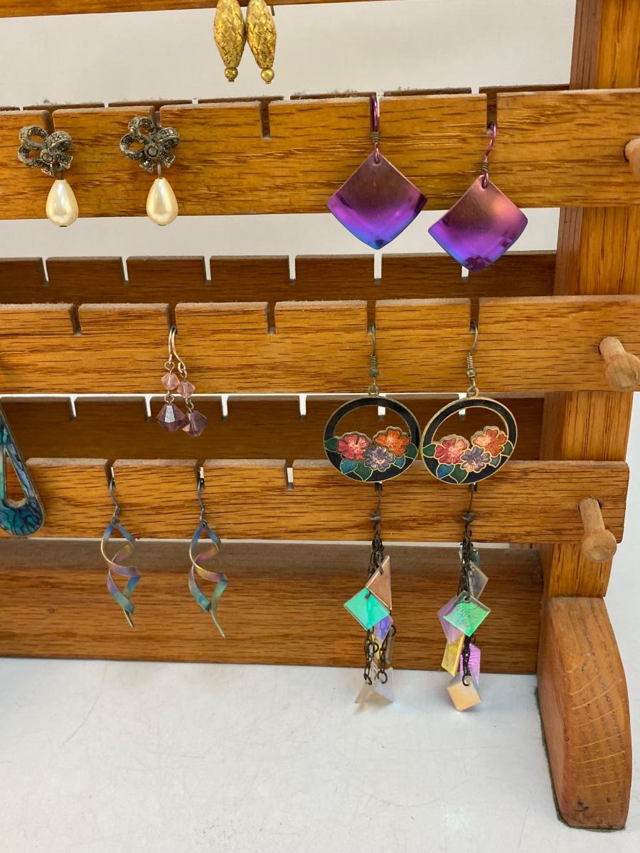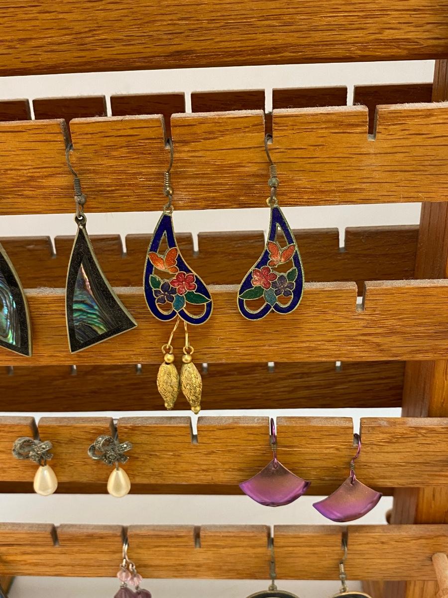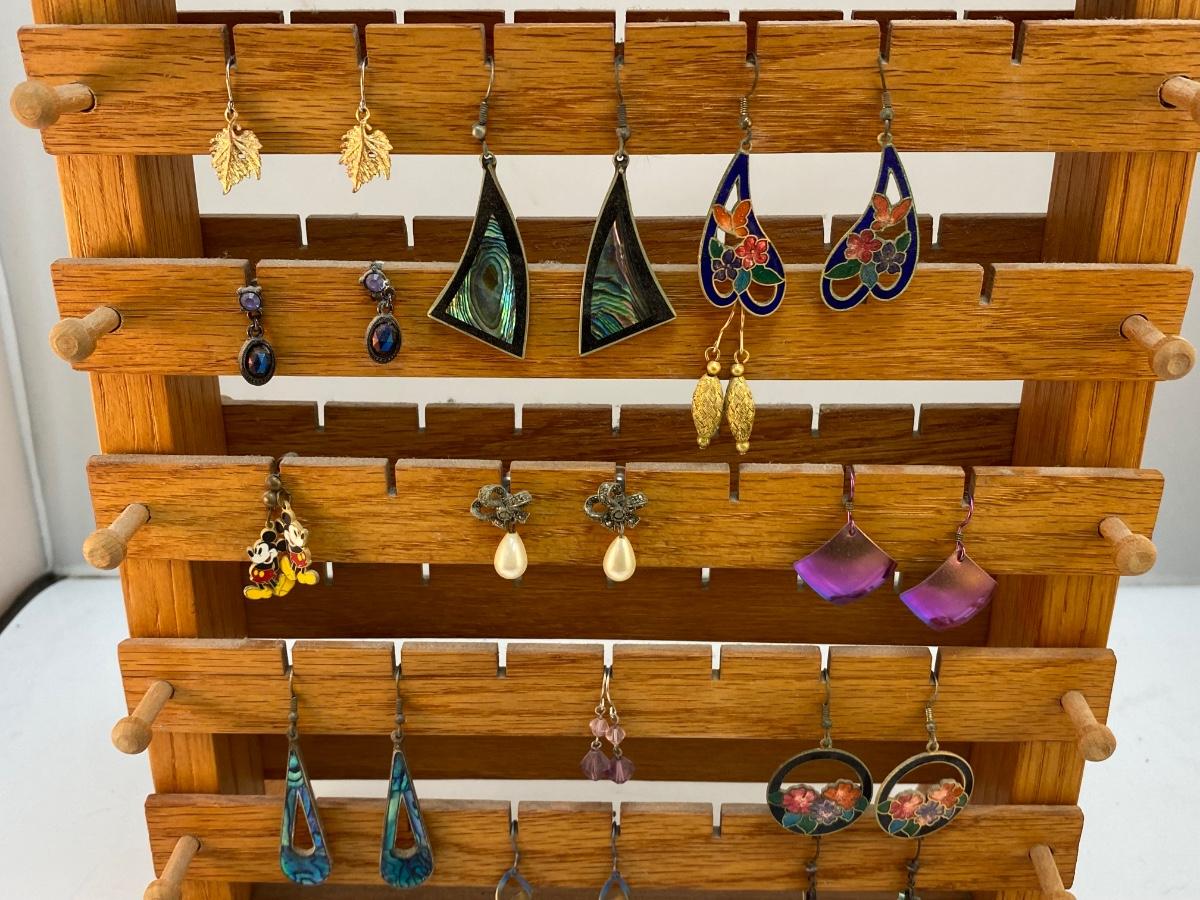 Lot of Retro Earrings Jewelry Holder Organizer Rack Variety Cloisonné Disney etc