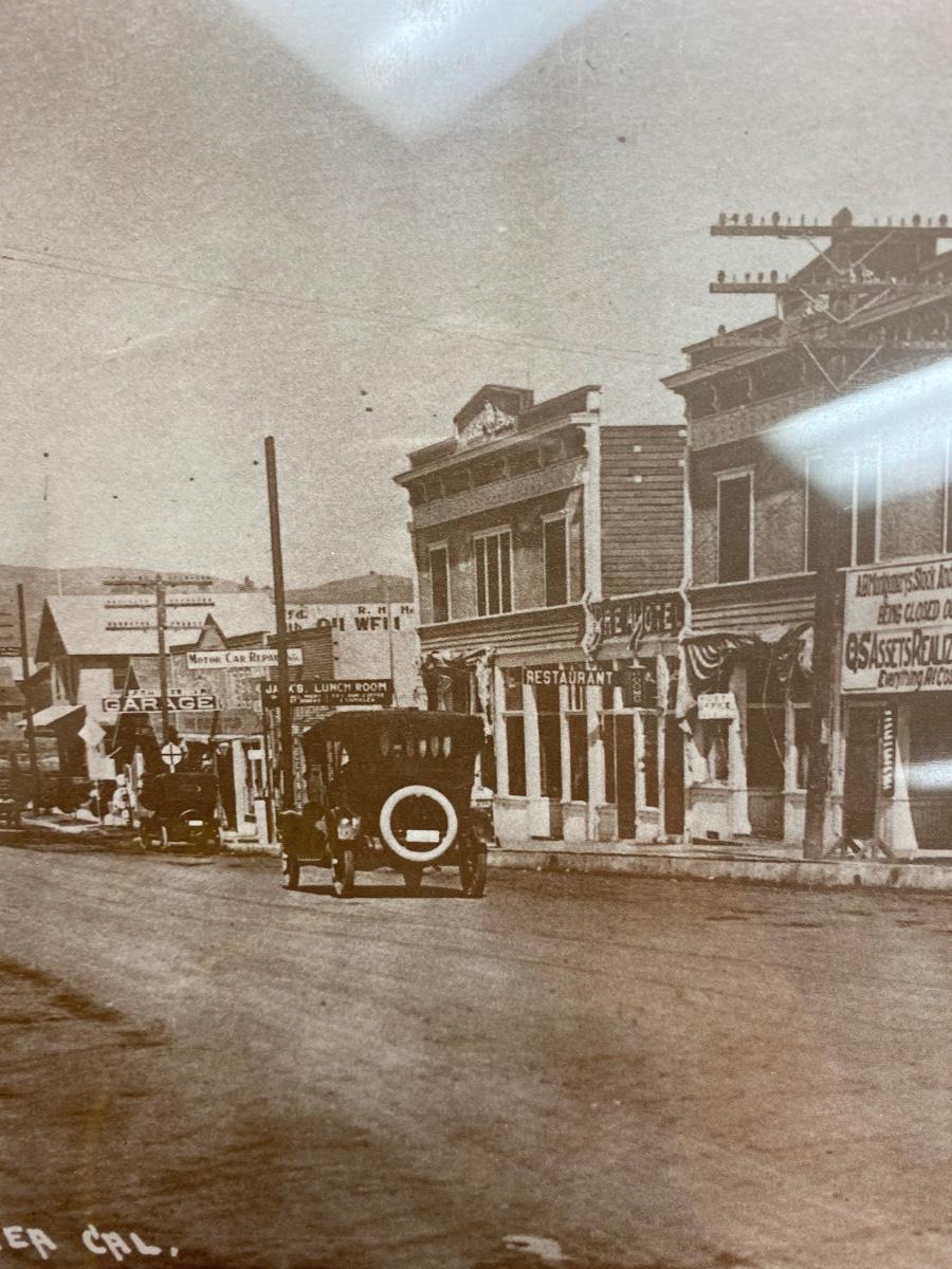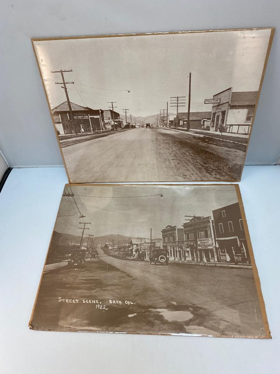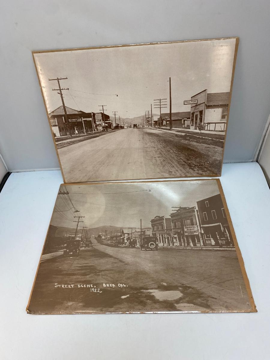 Pair of Sepia Reproduction Photos of Brea California Street Scene Pomona Ave 1920
