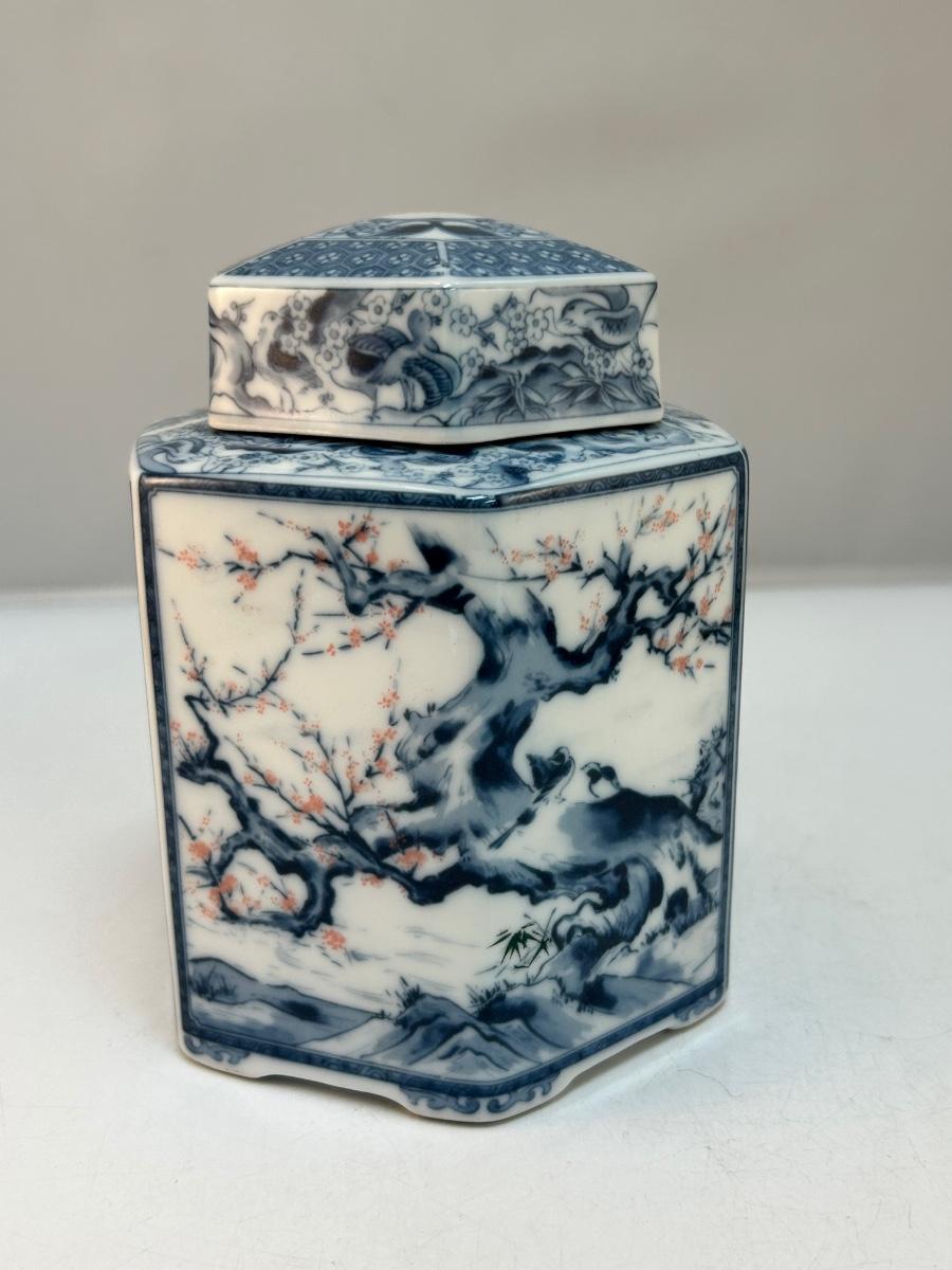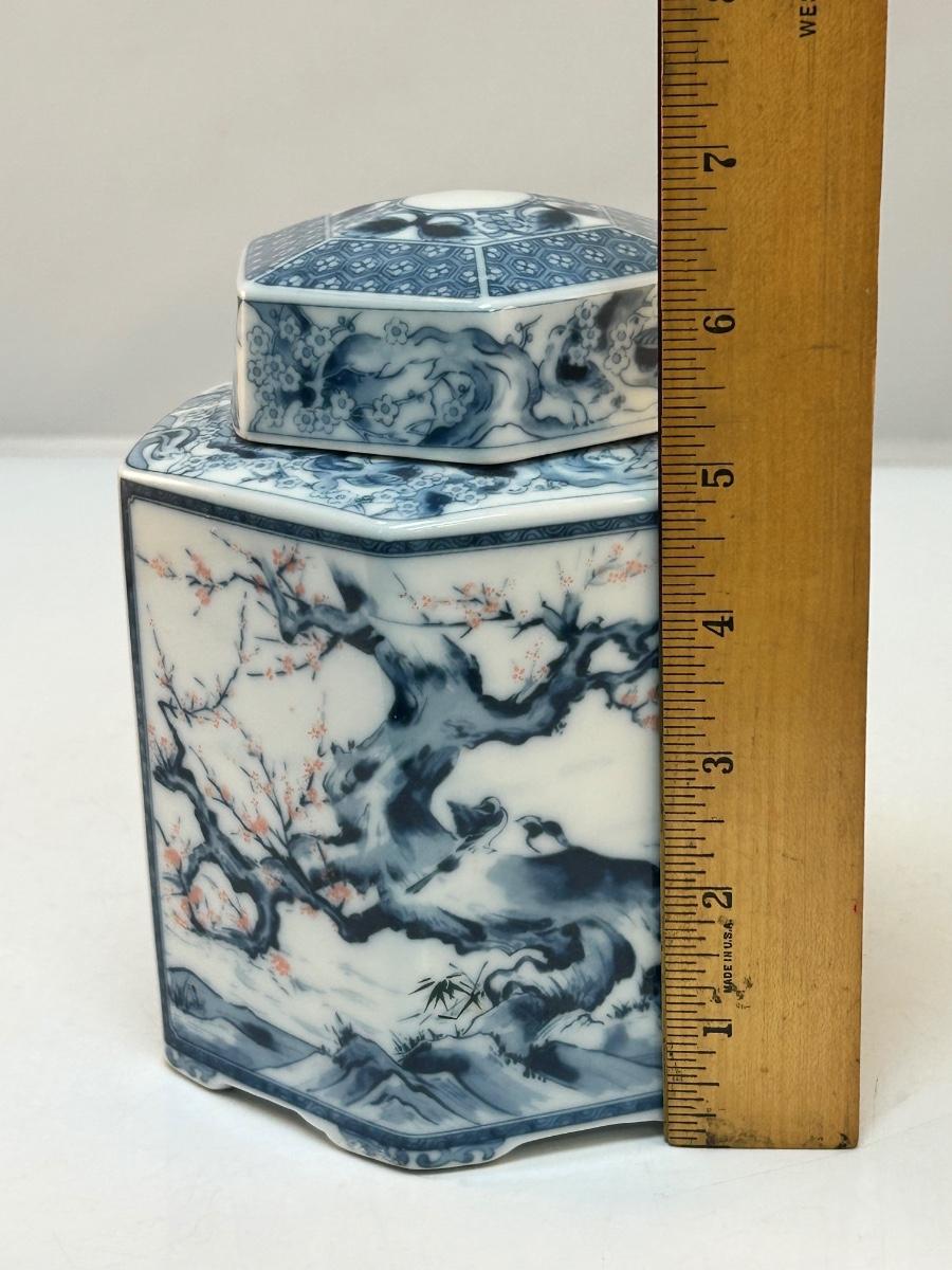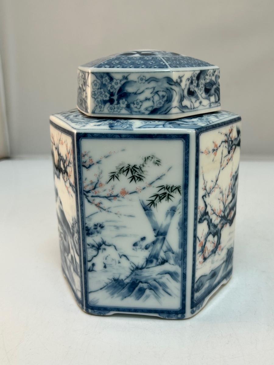 Vintage Flow Blue Asian Style Art Ginger Jar Ceramic Porcelain Canister