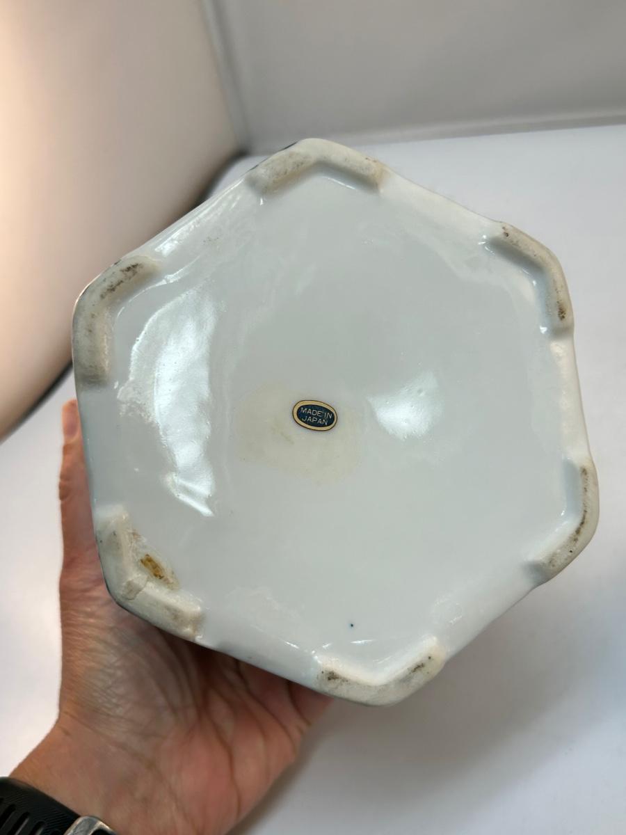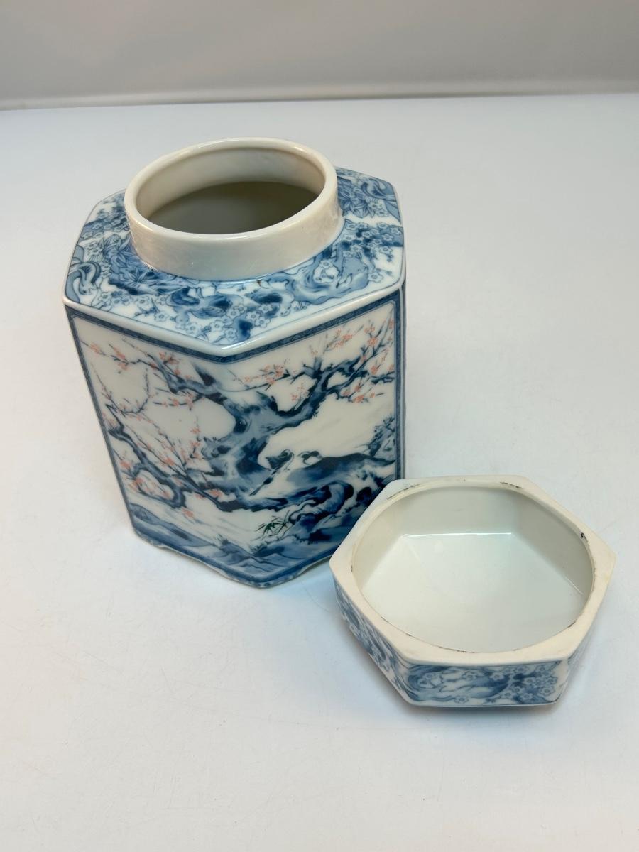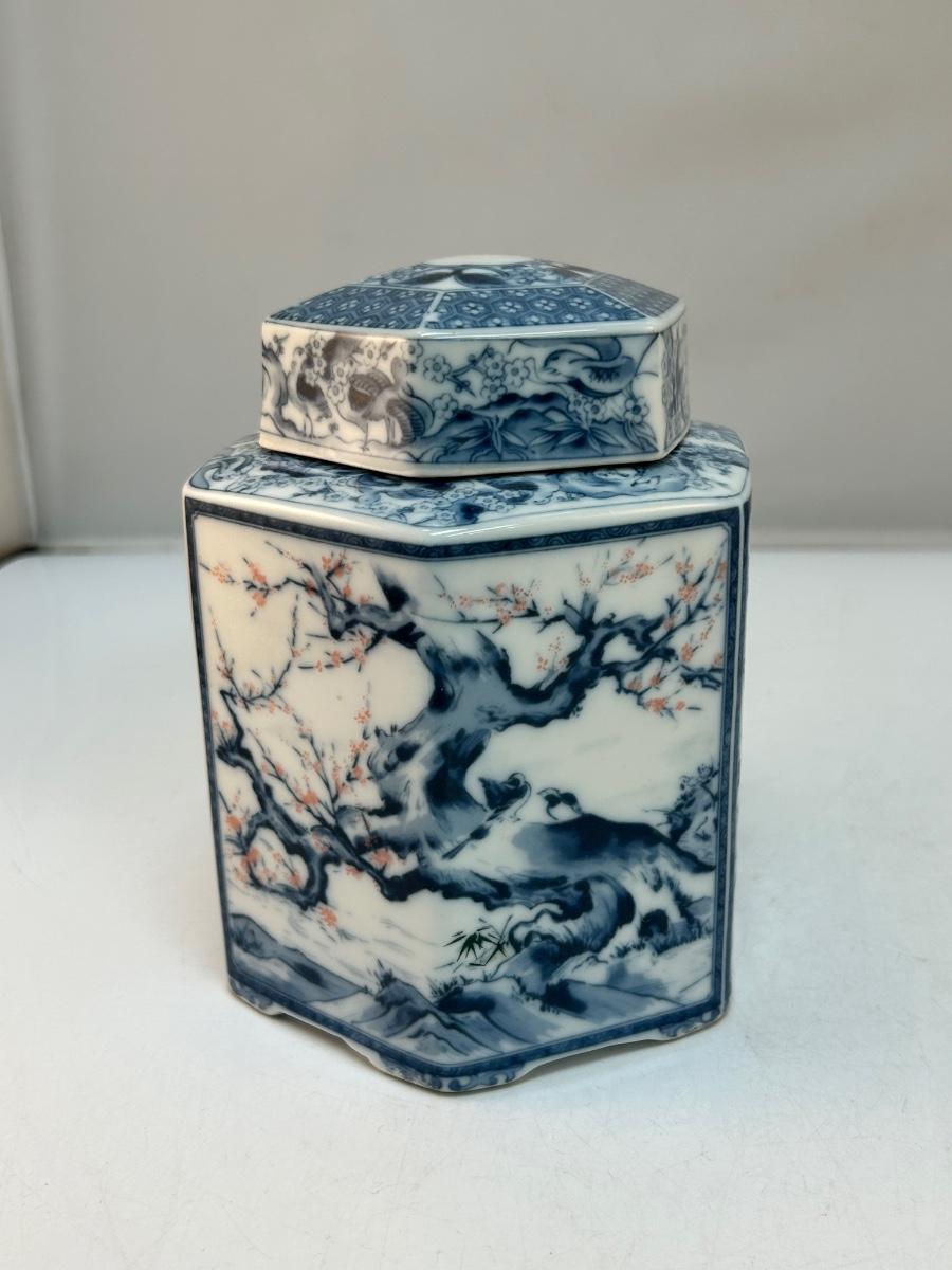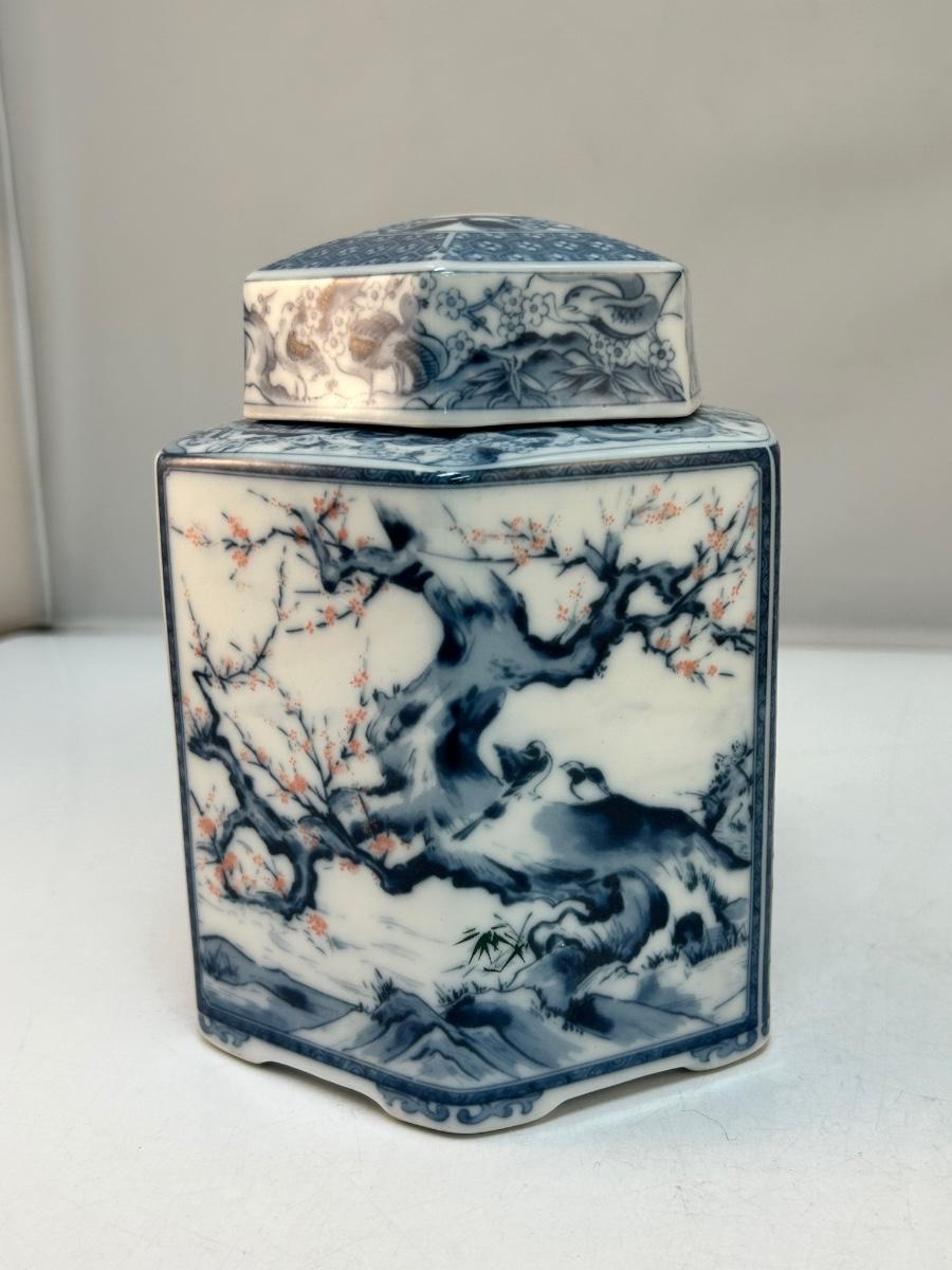 Vintage Flow Blue Asian Style Art Ginger Jar Ceramic Porcelain Canister