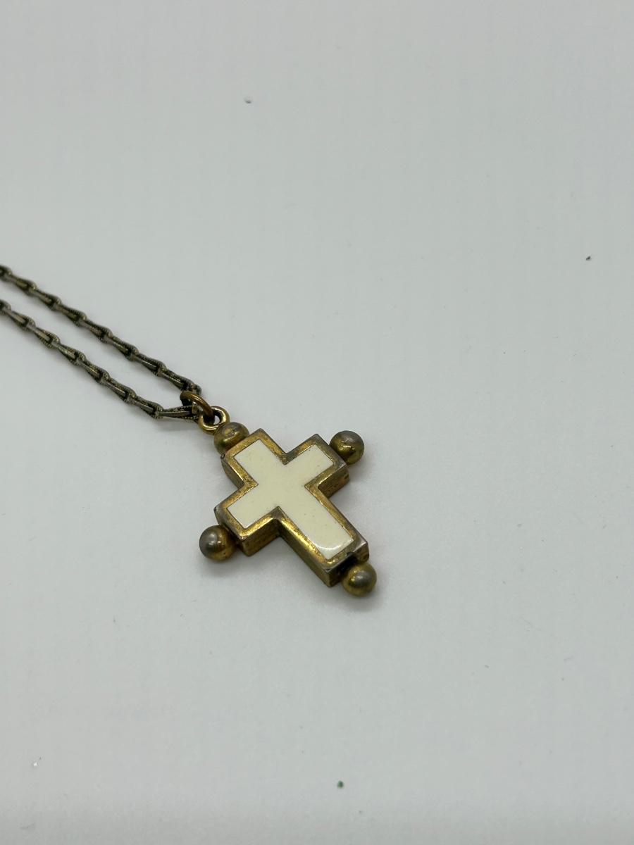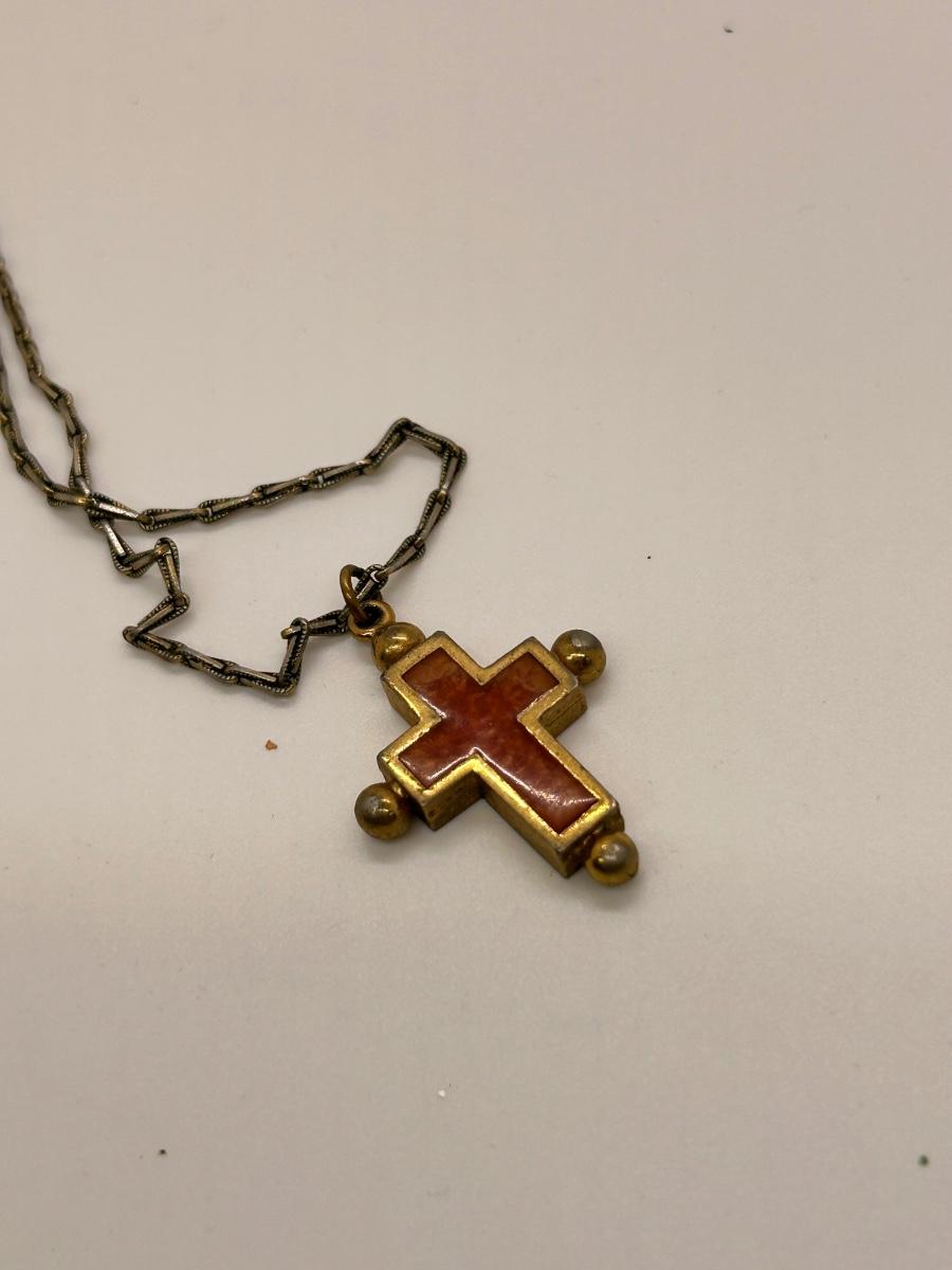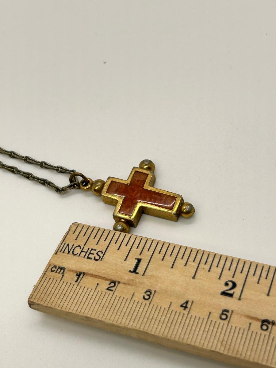 Vintage Retro Gold Tone Reversible Stone Enamel Cross Pendant Charm Necklace