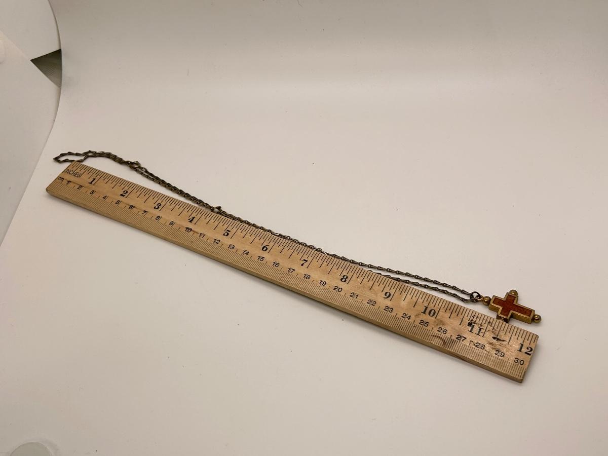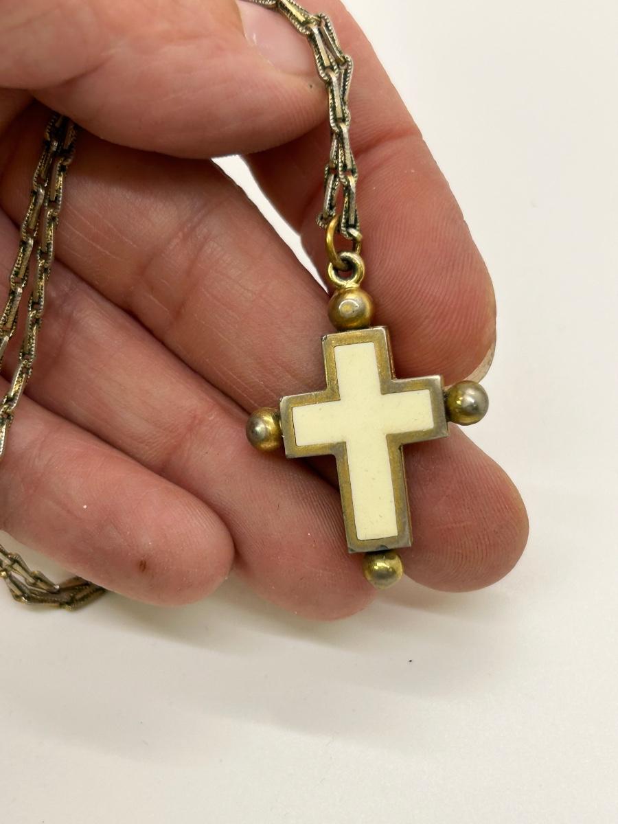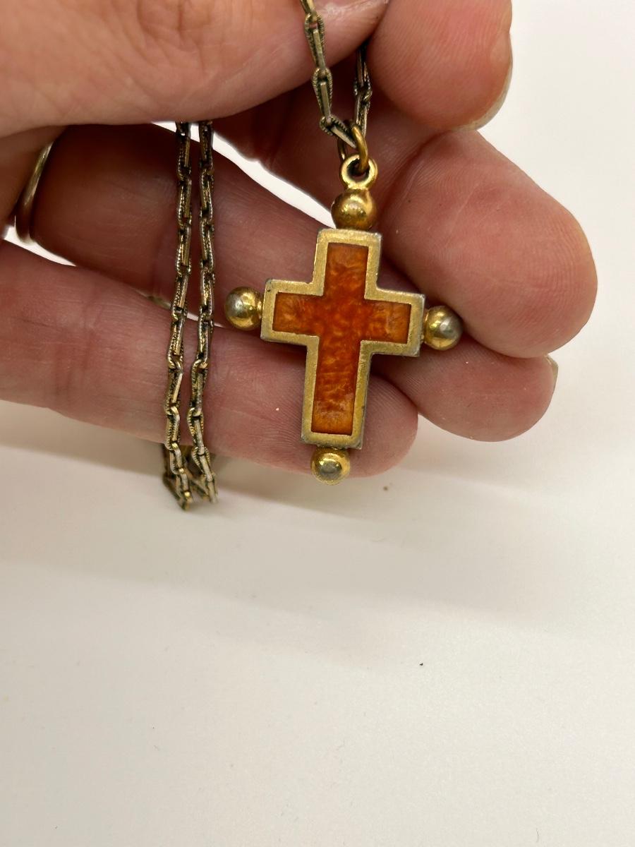 Vintage Retro Gold Tone Reversible Stone Enamel Cross Pendant Charm Necklace
