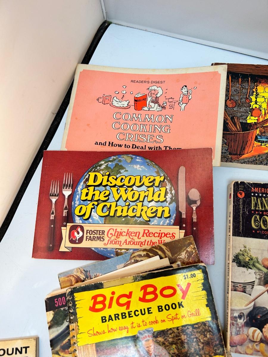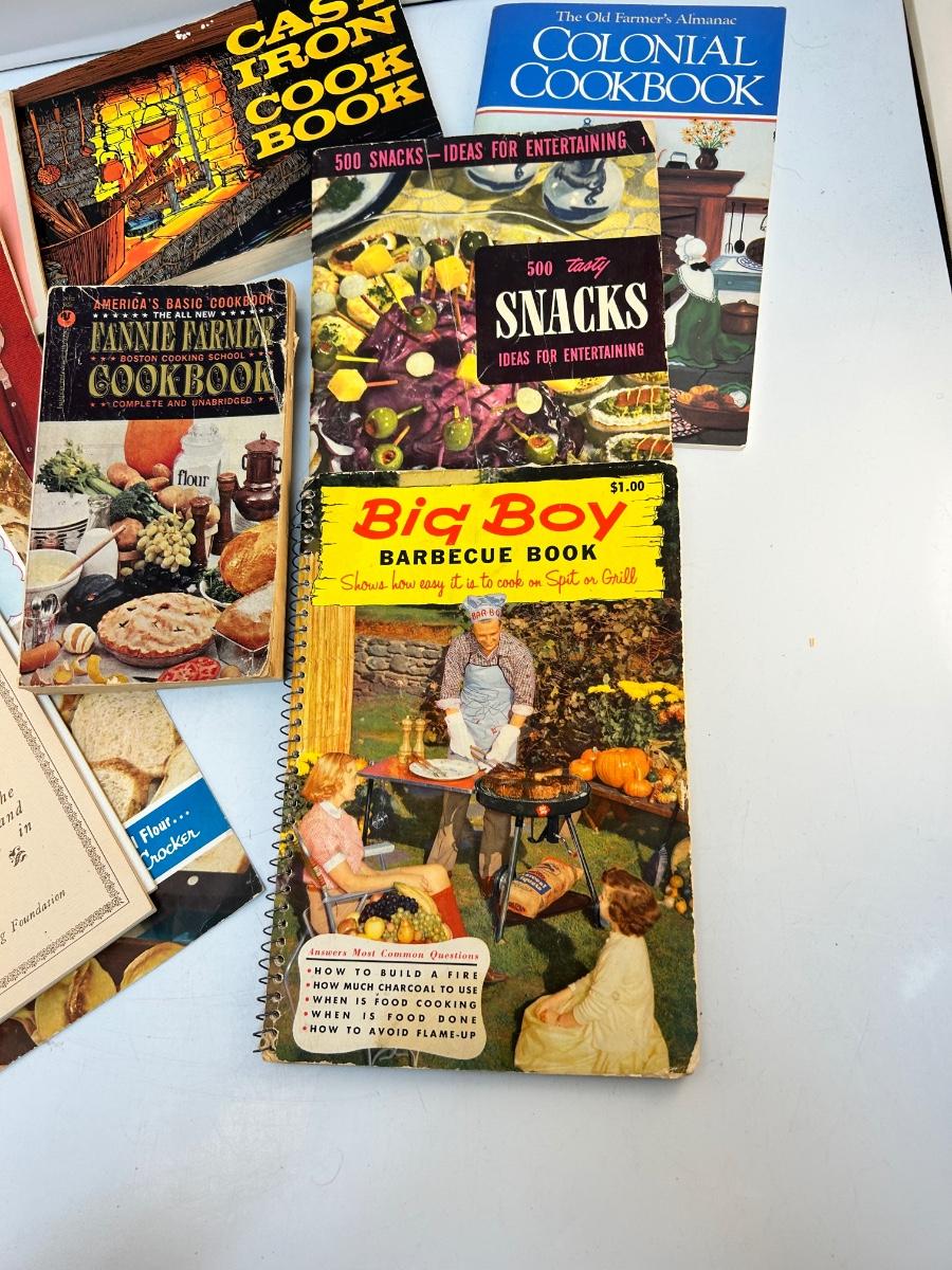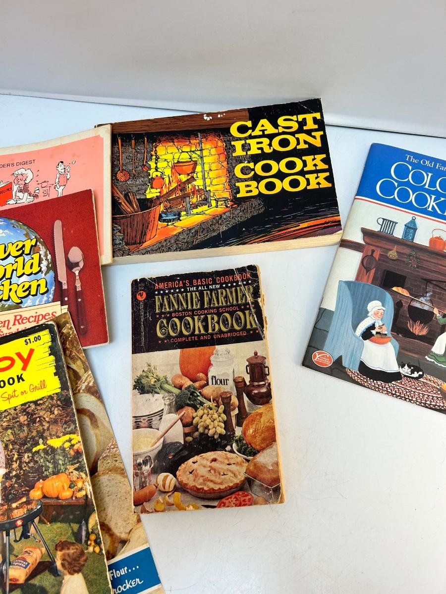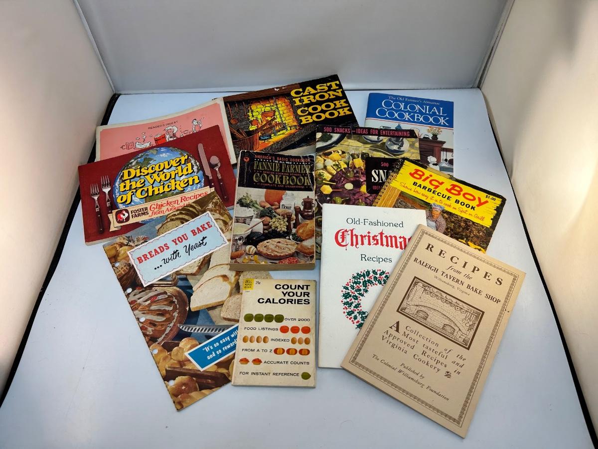 Mixed Lot of Vintage Cookbook Booklets BBQ Cast Iron Calorie Counter Fannie Farmer Foster Farms. In good vintage condition. Great mix of food recipes.