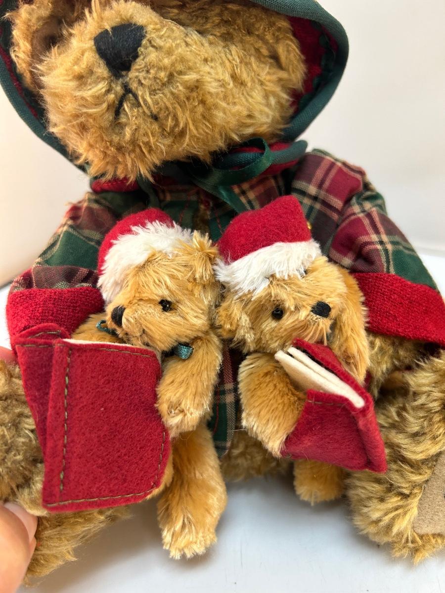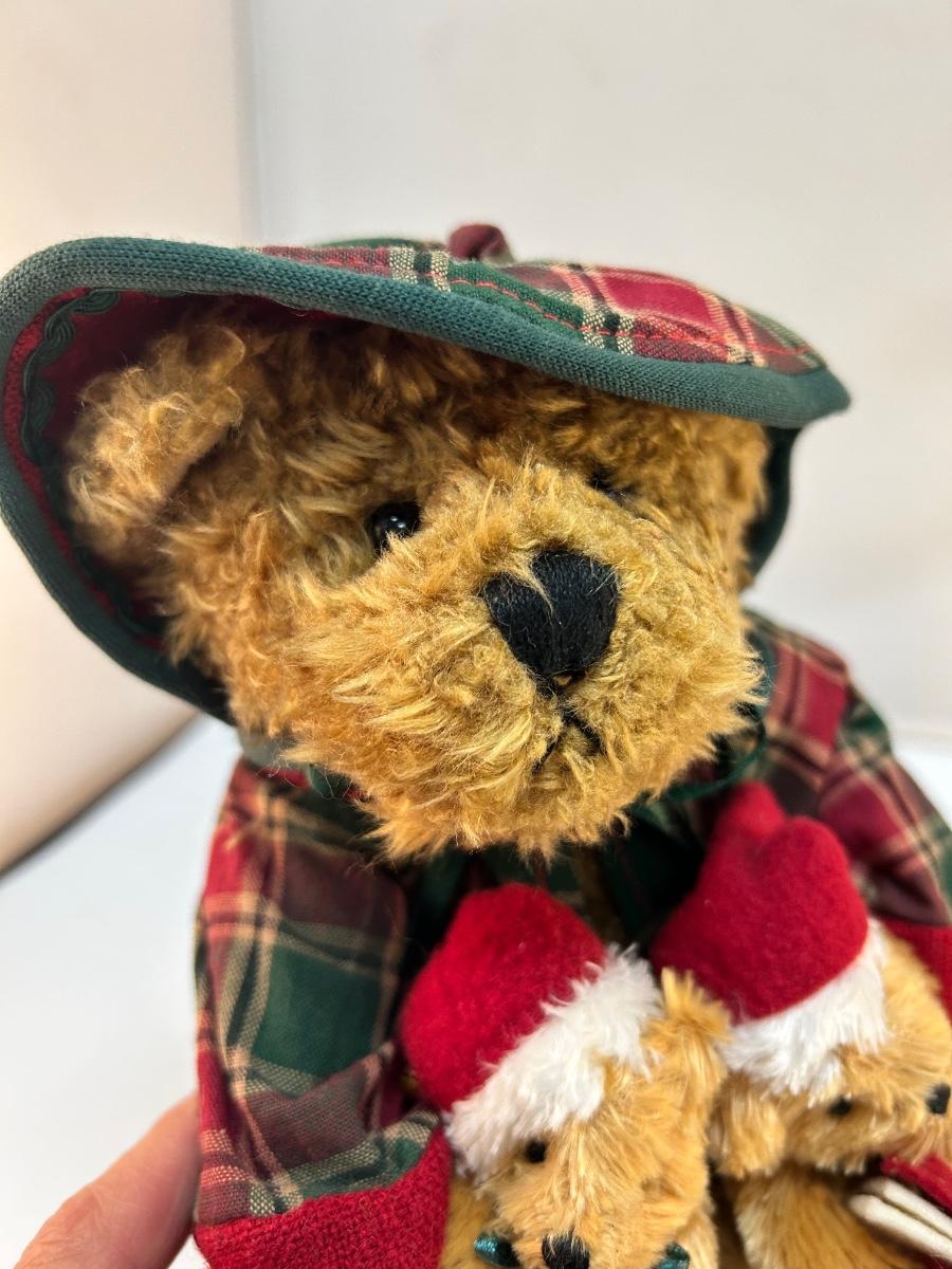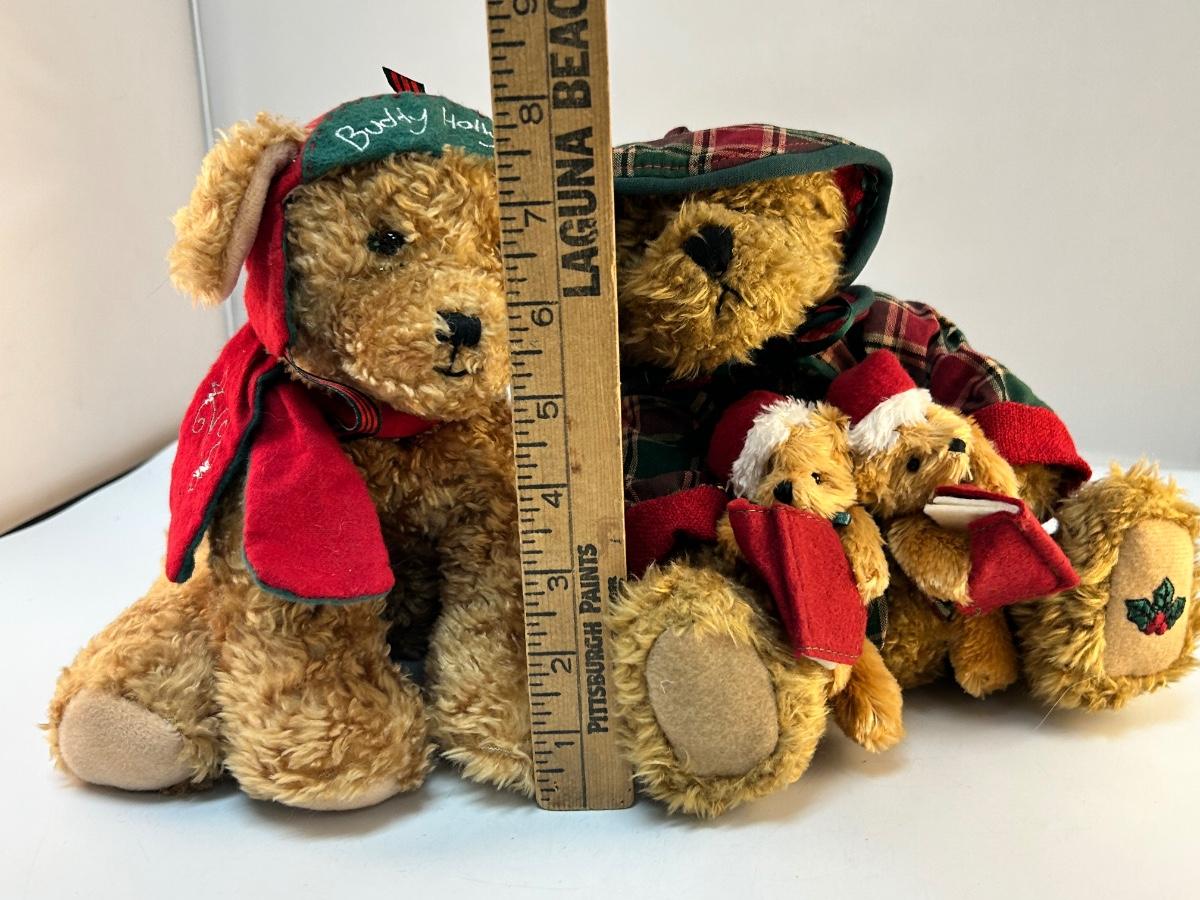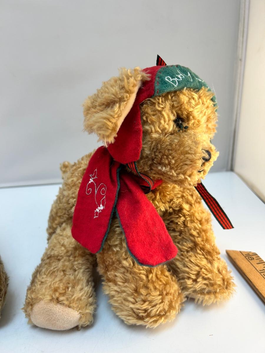 Pair of Furry Plush Stuffed Christmas Holiday Animals Teddy Bear and Puppy Dog. In good condition. No holes or stains, may be dusty from age. Under 8" size.