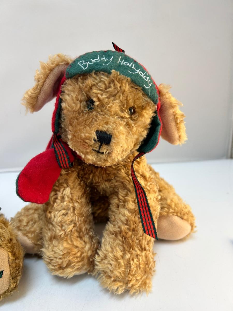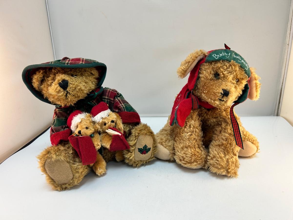 Pair of Furry Plush Stuffed Christmas Holiday Animals Teddy Bear and Puppy Dog