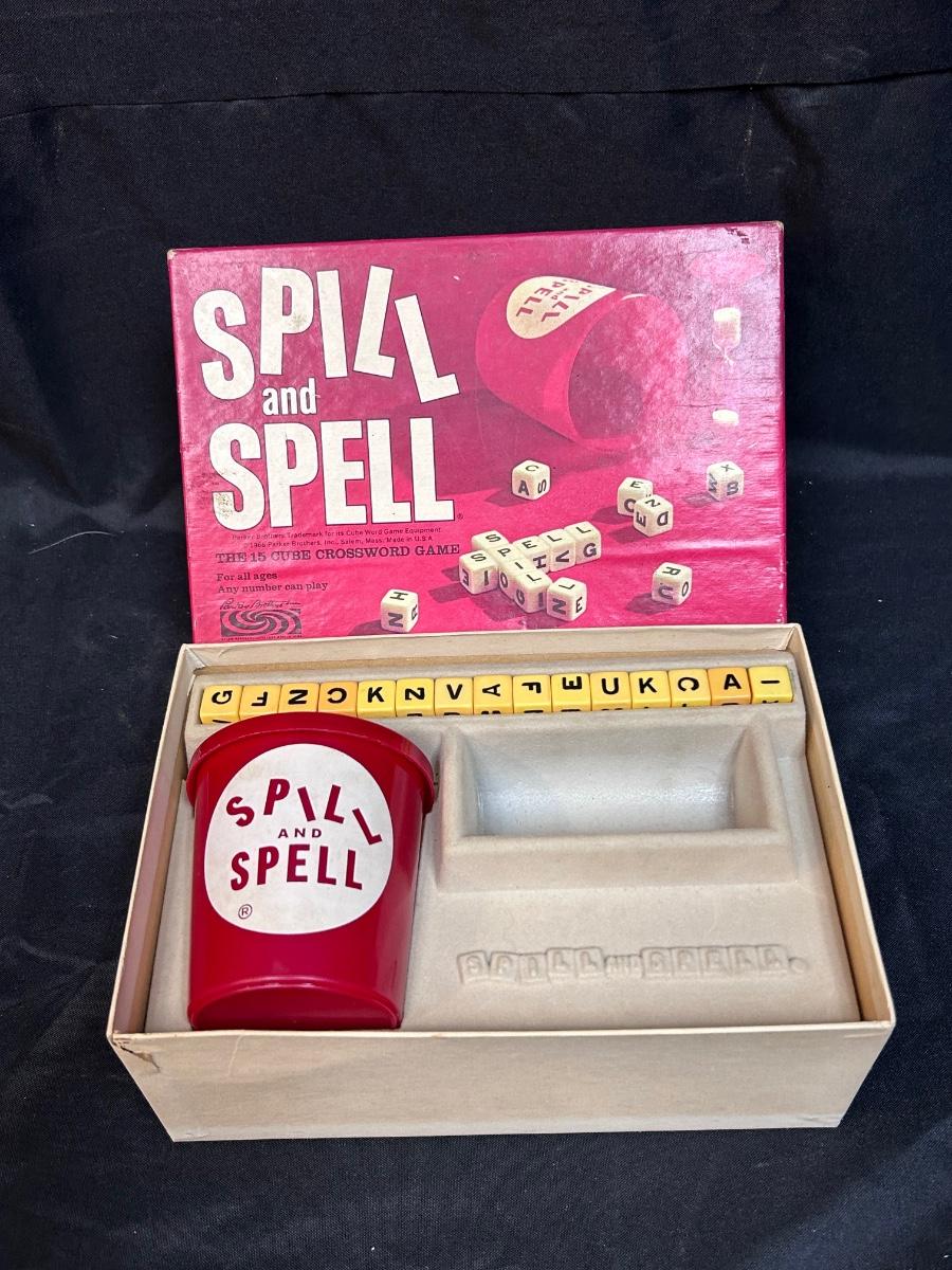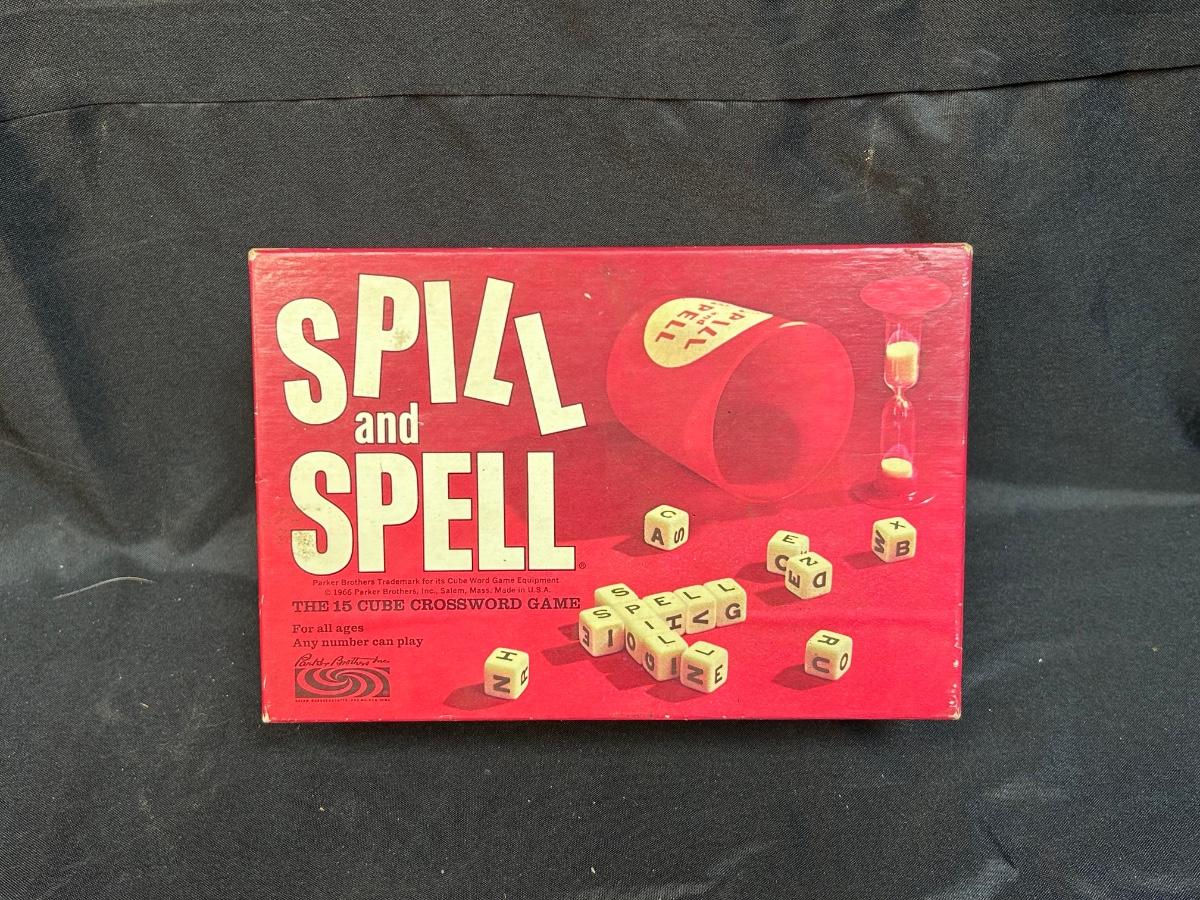Vintage Spill and Spell Crossword Dice Game. Missing timer and instructions, rest of game seems to be complete.