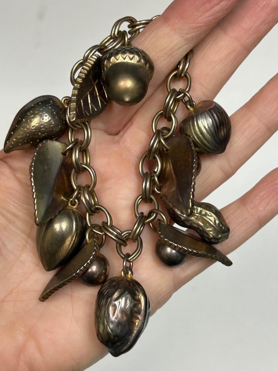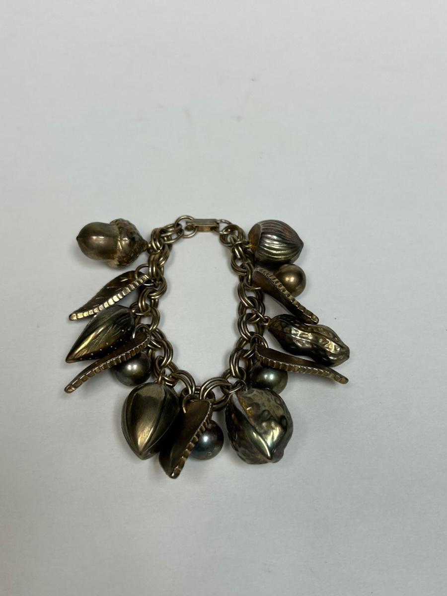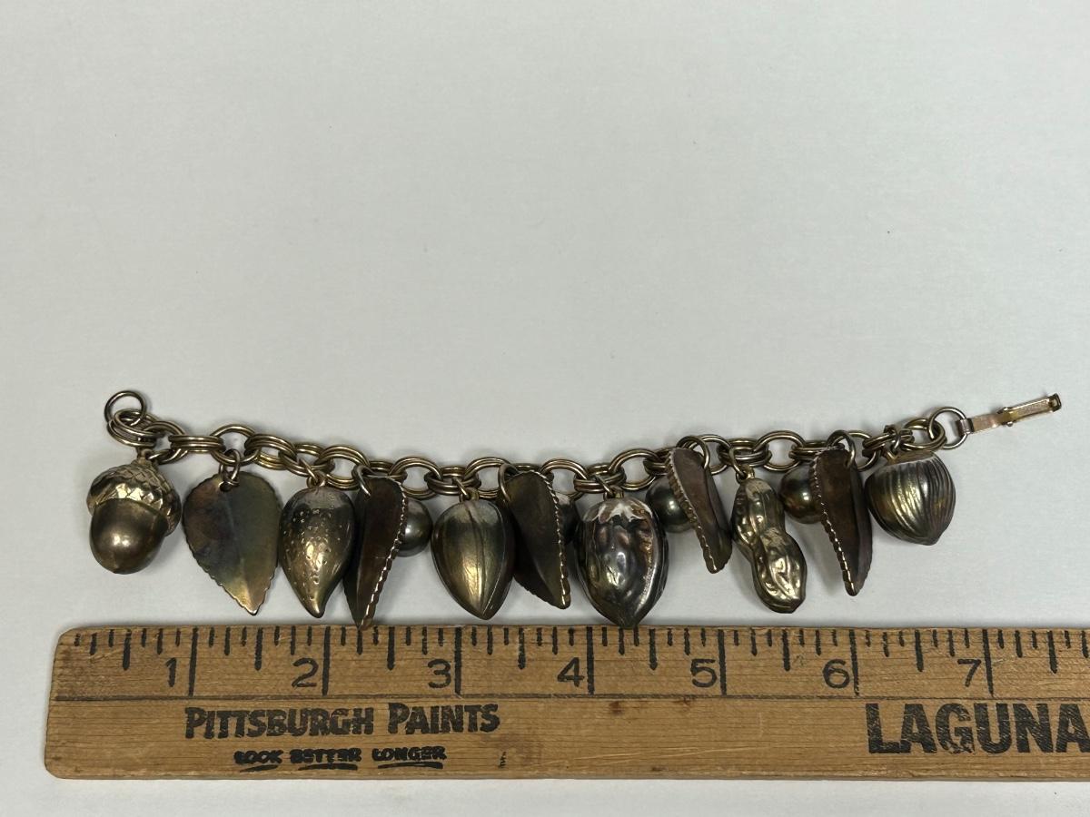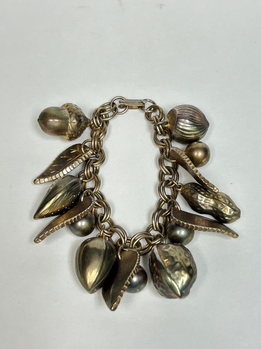 Vintage Gold Tone Leaves and Mixed Nuts Charm Bracelet