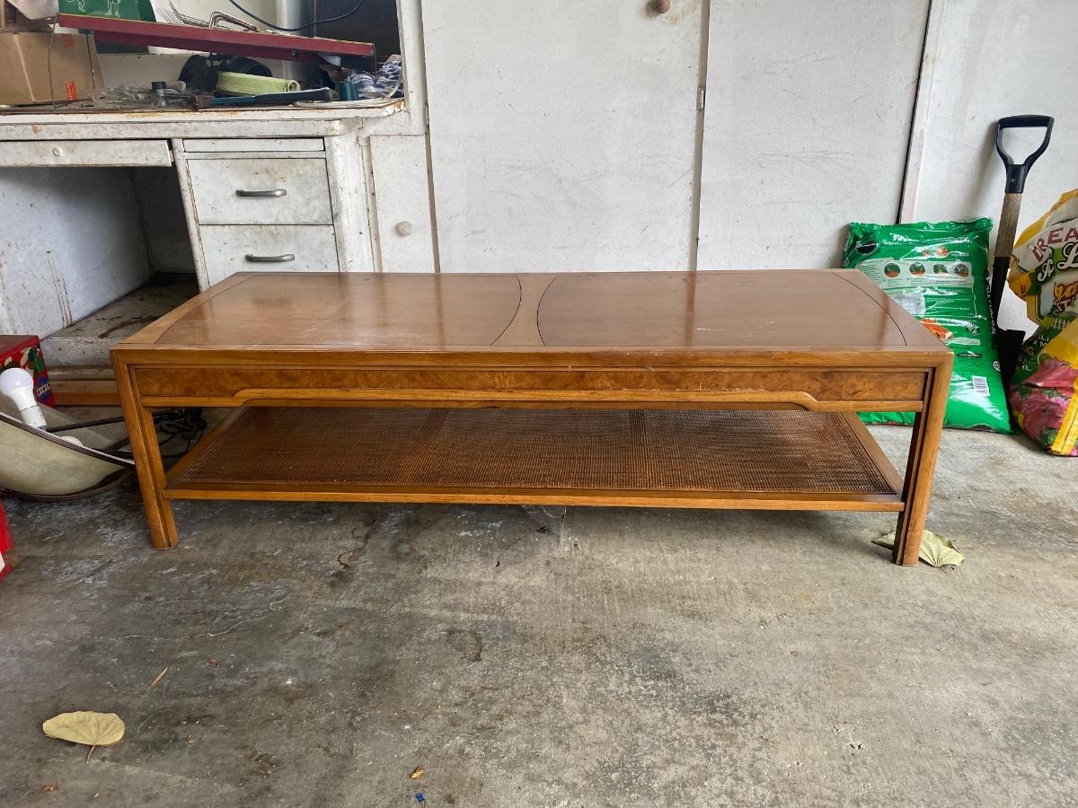 Vintage Midcentury Eastend by Drexel Cane Bottom Wood Coffee Table