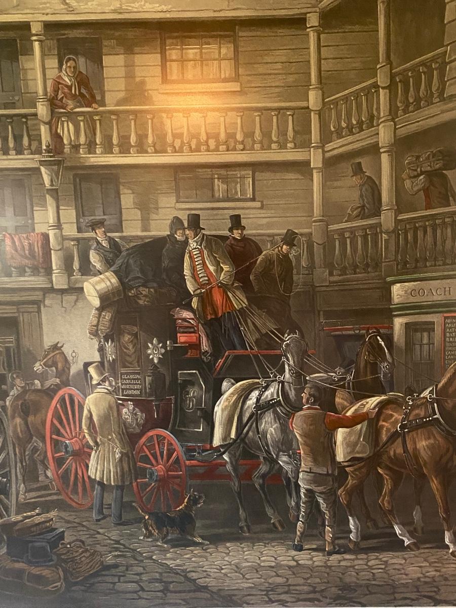 Large Frame Print The Olden Time Men on Horse Drawn Carriage by Fores