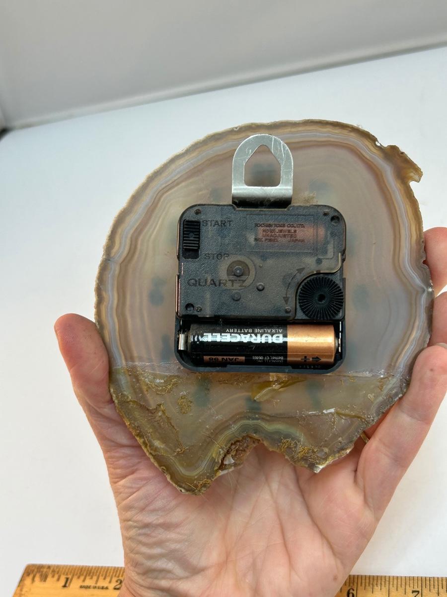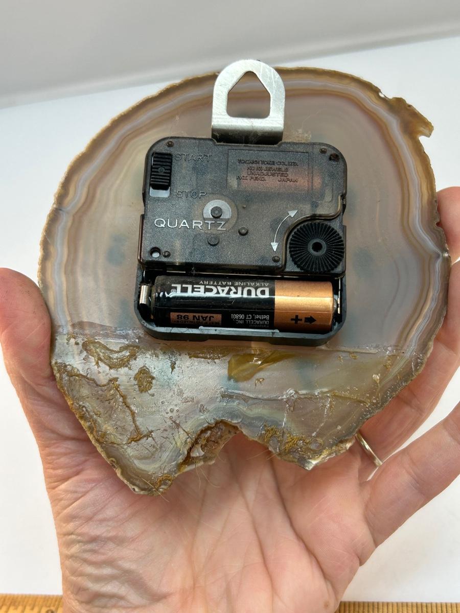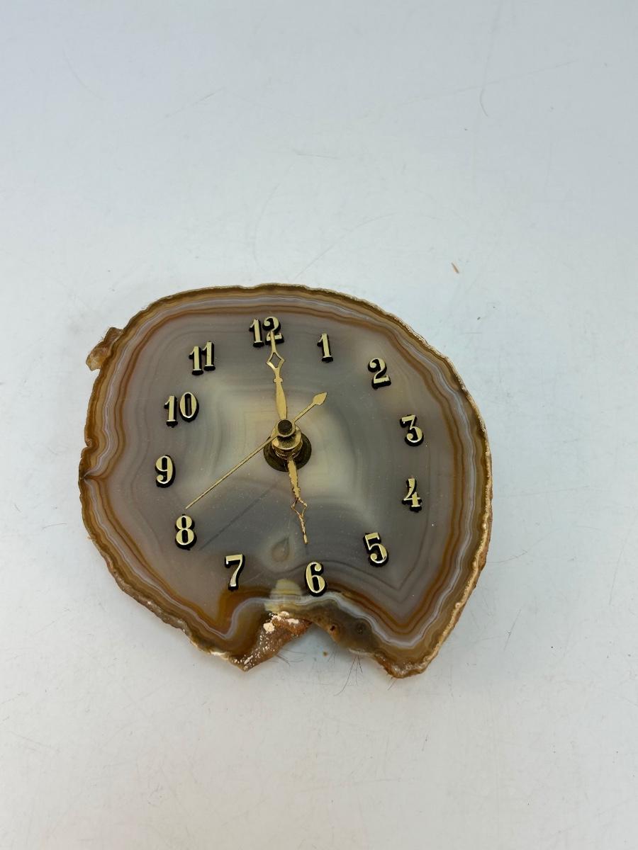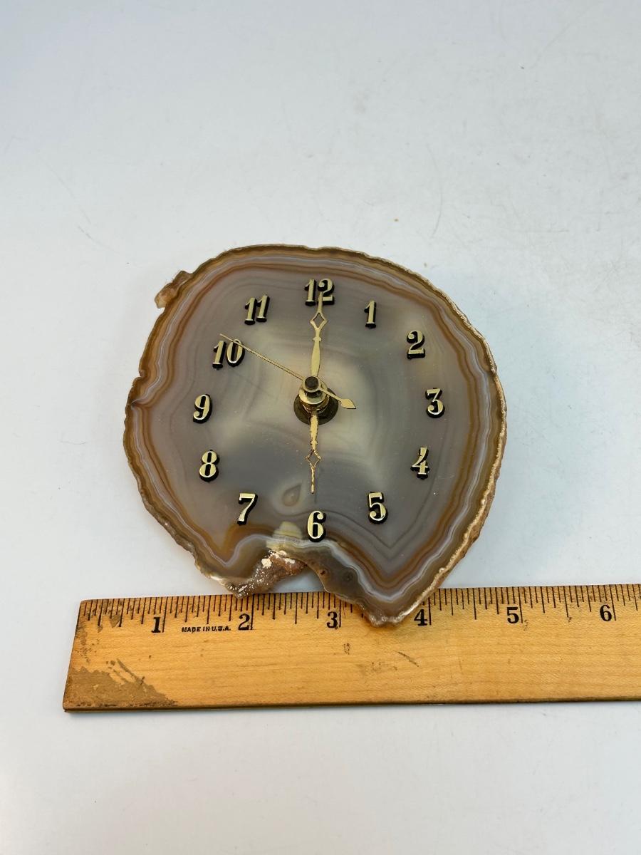 Vintage Small Geode Slice Battery Operated Clock. In good condition. May have originally been attached to something by the glue residue on back. Battery terminal looks clean.