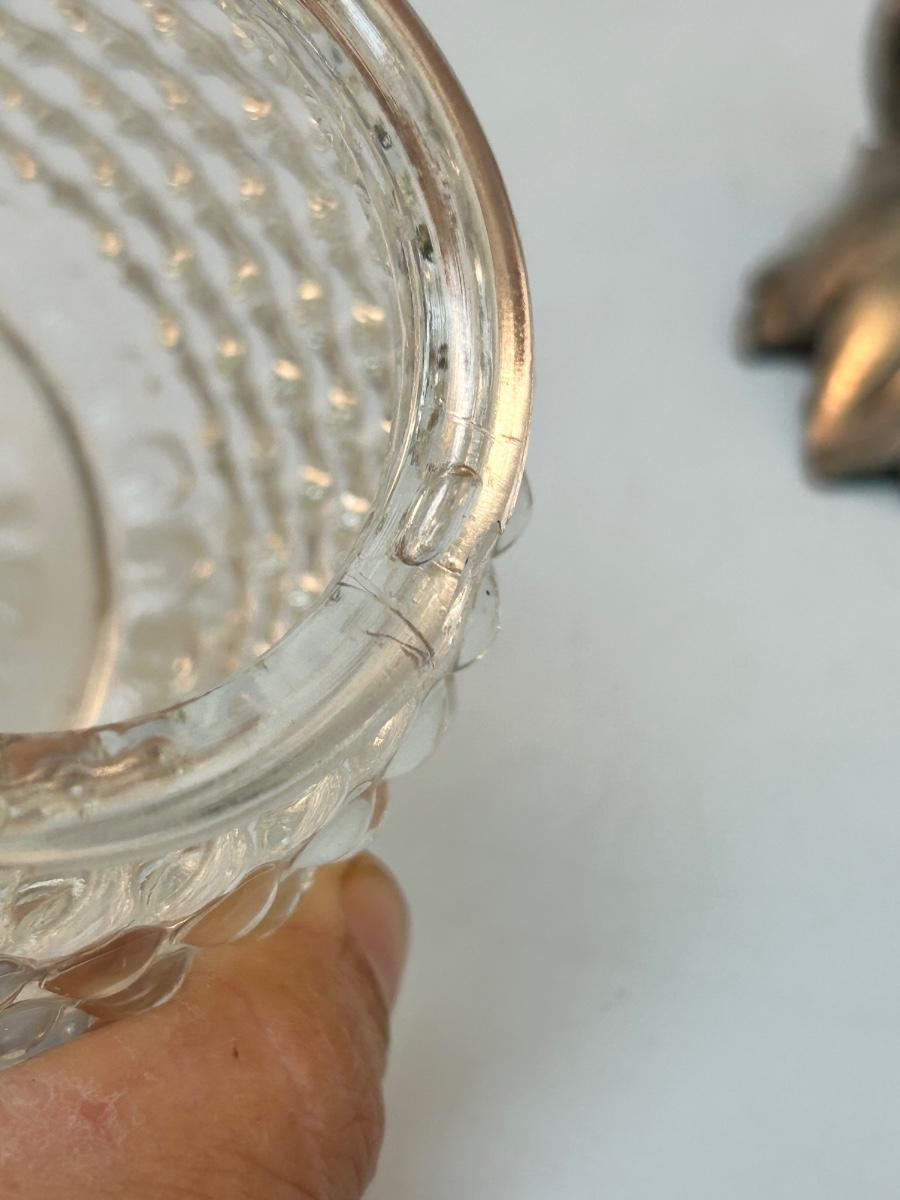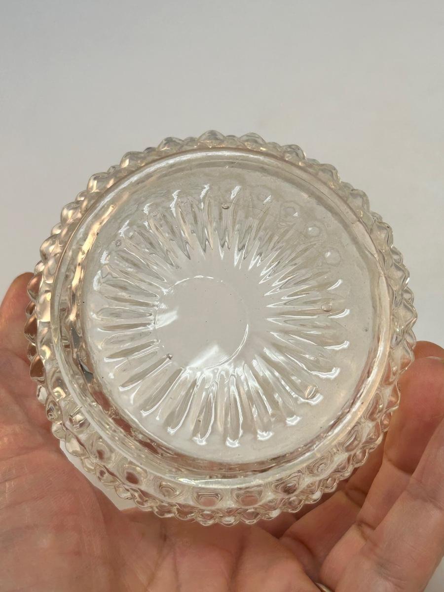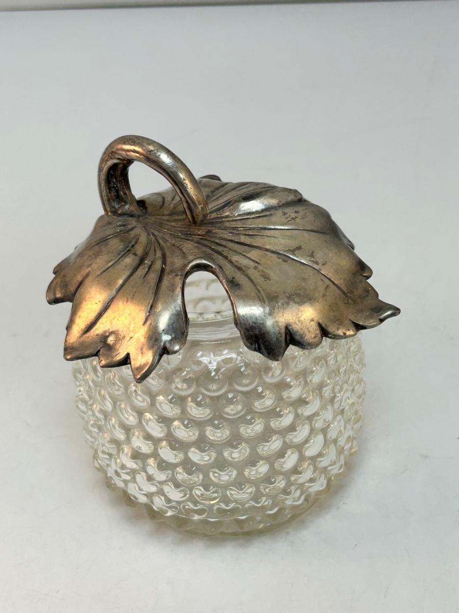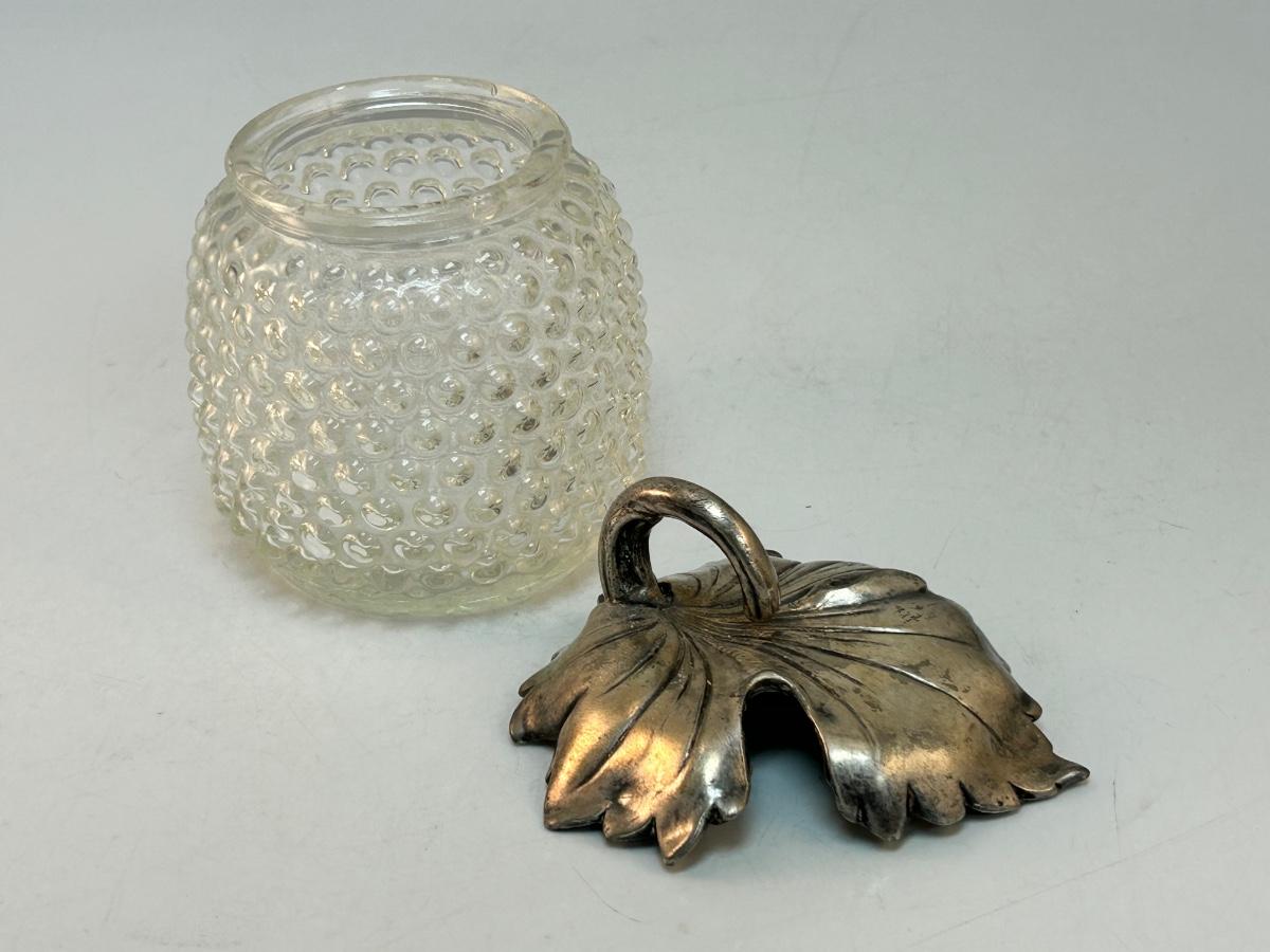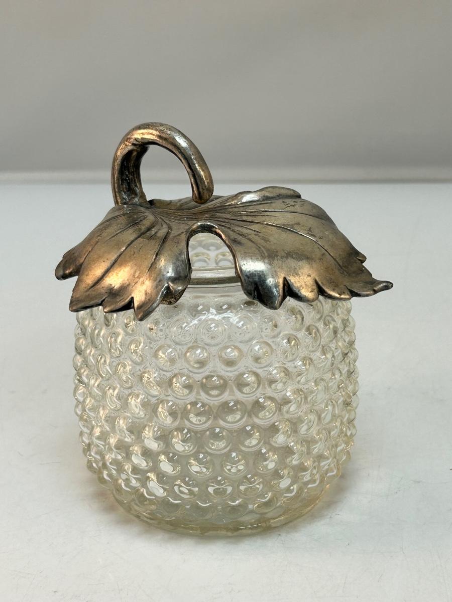 Vintage Clear Glass Hobnail Jelly Jam Sugar Jar Dish with Silver Tone Metal Top