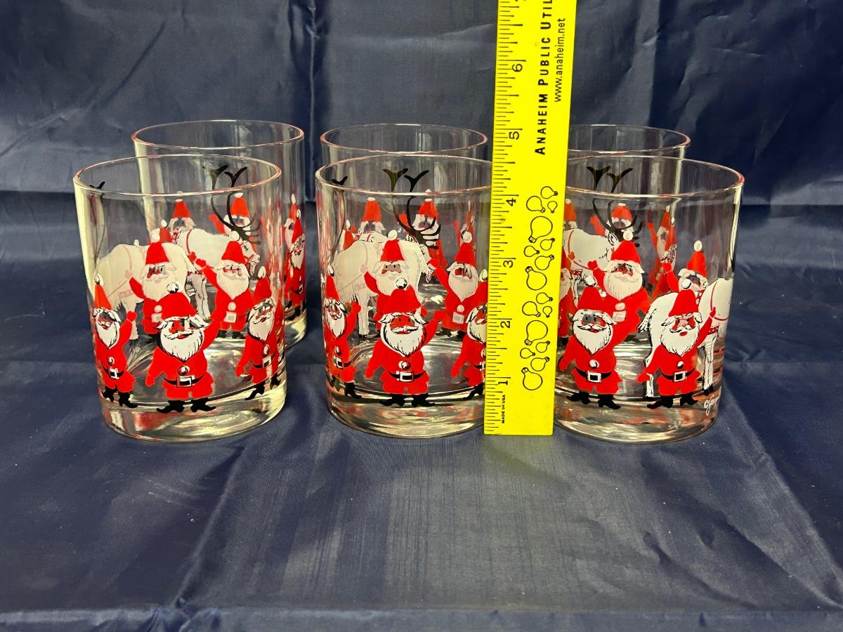 Vintage Midcentury Georges Briard Christmas Holiday Rocks Low Ball Tumblers Drink Glasses. Set of 6. In very good vintage condition.