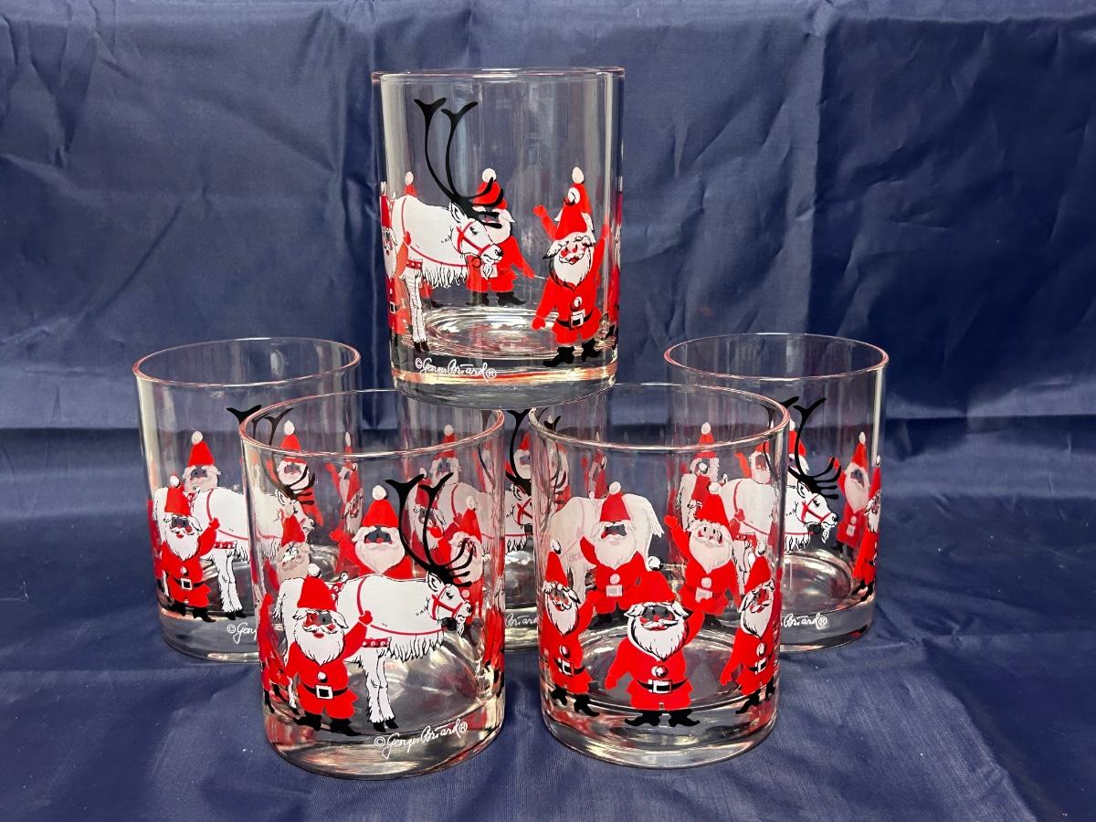 Vintage Midcentury Georges Briard Christmas Holiday Rocks Low Ball Tumblers Drink Glasses