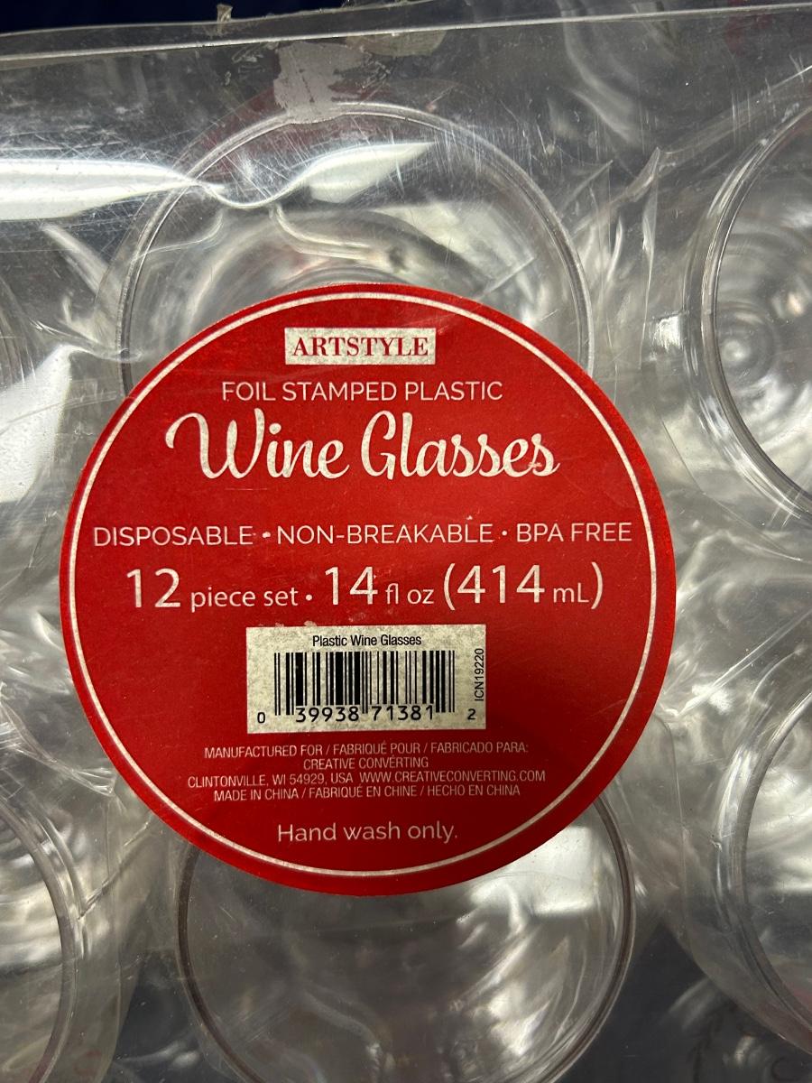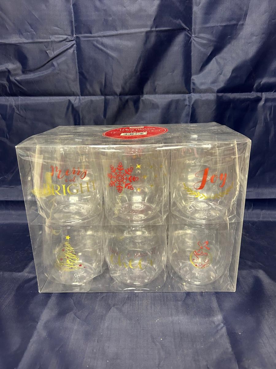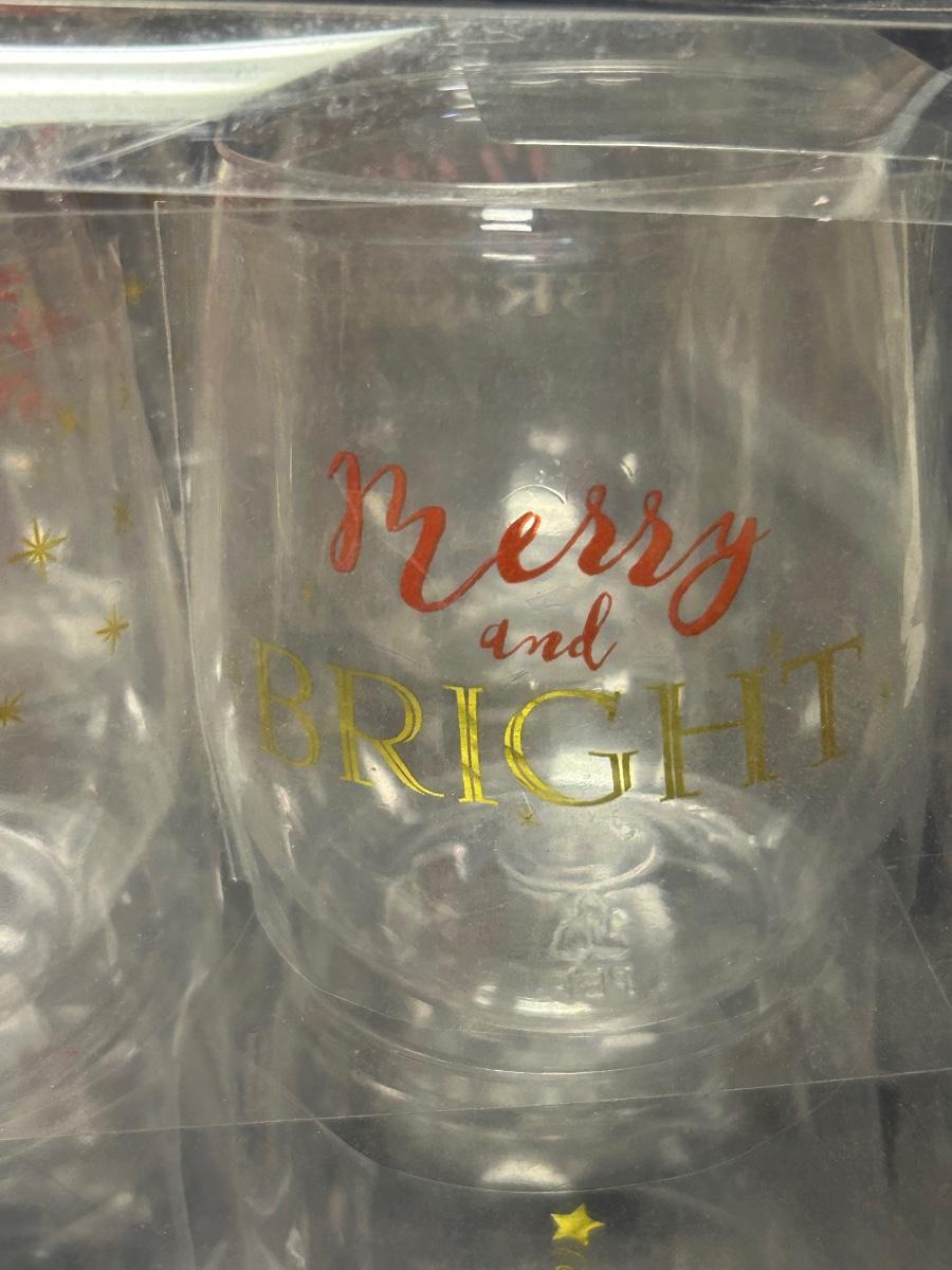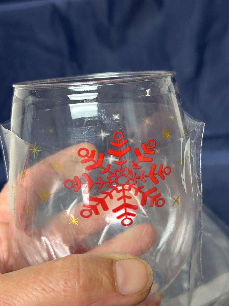 New in the Package Christmas Holiday Plastic Wine Glasses Set of 12