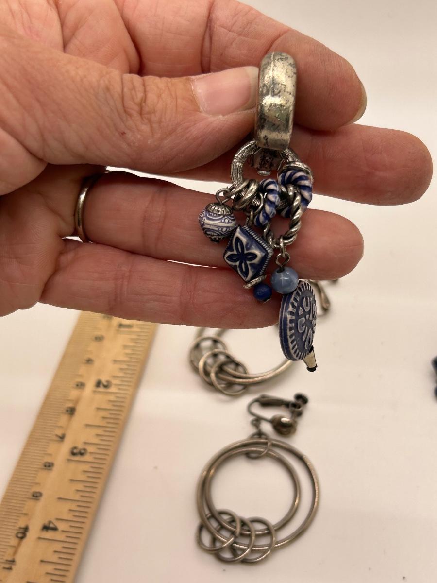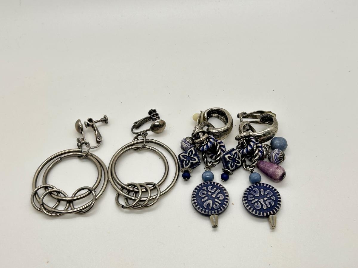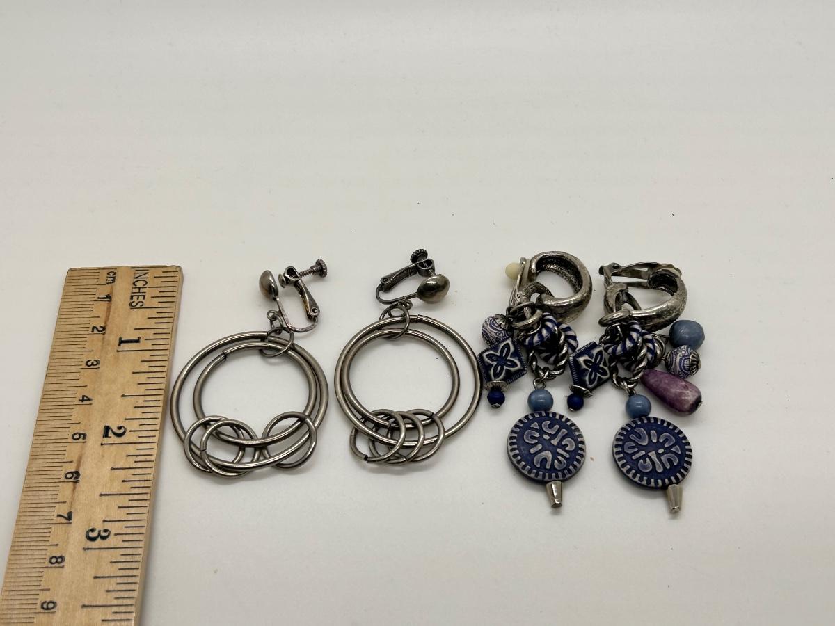Two Pairs of Silver Tone Dangling Clip Style Earrings