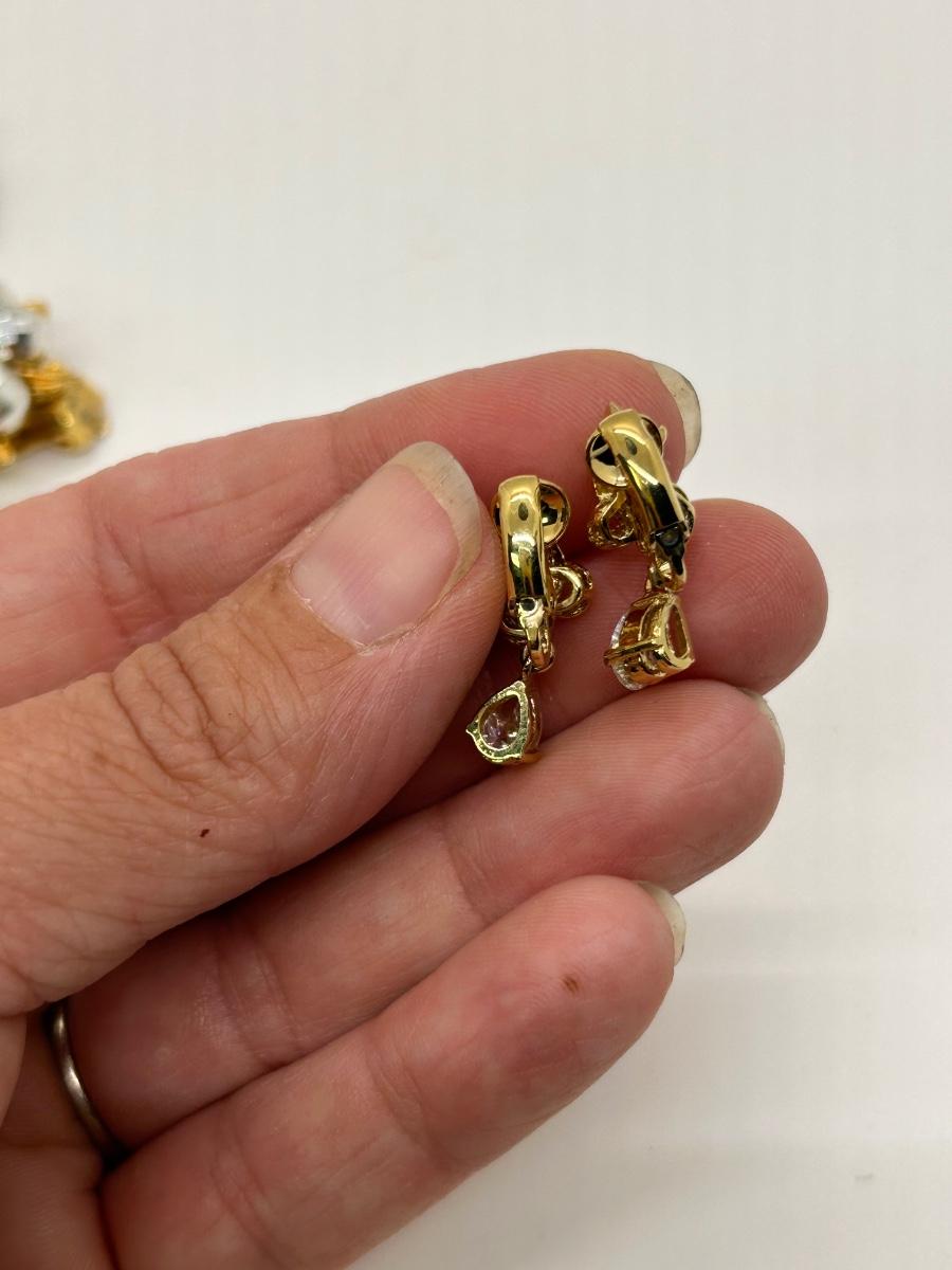 Two Pairs of Vintage Clip Style Earrings Dangling CZ and Metallic Bead Cluster